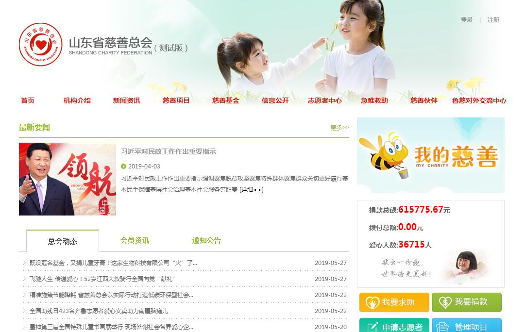 山東省慈善總會成立于2003年12月18日,2017年9月獲得山東省民政廳頒發(fā)的公開募捐資格證書,是由熱心慈善事業(yè)的公民、法人及其他社會組織自愿參加的全省性非營利公益社會團(tuán)體。其宗旨是發(fā)揚(yáng)人道主義精神,弘揚(yáng)中華民族優(yōu)秀傳統(tǒng),動員社會力量,籌募慈善資金,扶助弱勢群體,發(fā)展慈善事業(yè),促進(jìn)社會文明。其主要業(yè)務(wù)是籌募善款、賑災(zāi)救助、扶貧濟(jì)困、公益援助,與國內(nèi)外慈善組織合作交流,指導(dǎo)會員單位工作,推動慈善事業(yè)發(fā)展。 省慈善總會現(xiàn)有會員213個(gè),理事107個(gè),常務(wù)理事60個(gè)??倳淖罡邫?quán)力機(jī)構(gòu)是會員代表大會,執(zhí)行機(jī)構(gòu)為理事會,日常辦事機(jī)構(gòu)為省慈善總會辦公室,下設(shè)綜合事務(wù)部、財(cái)務(wù)與募捐中心、救助聯(lián)絡(luò)部、項(xiàng)目與志愿服務(wù)部。山東省慈善總會成立以來,在省委、省政府及省民政廳的正確領(lǐng)導(dǎo)下,在社會各界和全省人民的大力支持和熱情參與下,堅(jiān)持“依靠社會辦慈善,辦好慈善為社會”的方針,15年來,開拓創(chuàng)新,扎實(shí)工作,從無到有、從小到大、從大到強(qiáng),成為山東省體量最大的慈善組織之一。山東省慈善總會倡導(dǎo)發(fā)起的“慈心一日捐”活動已成為全國慈善募捐品牌,按照“依法組織,廣泛發(fā)動,堅(jiān)持自愿,鼓勵(lì)奉獻(xiàn)”的原則,倡導(dǎo)每個(gè)企業(yè)捐出一天的利潤或節(jié)約的一筆資金,每位公民獻(xiàn)出一天的工資收入或節(jié)約的一筆支出。同時(shí),企業(yè)和家庭(個(gè)人)冠名基金也取得新突破,為我省救助項(xiàng)目開展提供了可靠的資金支持。2018年,山東省慈善總會陸續(xù)打通與騰訊公益、公益寶、聯(lián)勸網(wǎng)、新華公益、新浪公益等網(wǎng)絡(luò)募捐平臺的合作,召開由158家公益組織參加的“慈善山東”公益大會,牽頭發(fā)起首屆“慈山東 益齊魯”公益創(chuàng)投大賽,聯(lián)合72家省內(nèi)公益慈善機(jī)構(gòu)參與騰訊99公益日活動,三天共募捐1398萬,開創(chuàng)了我省慈善總會系統(tǒng)網(wǎng)絡(luò)募捐的新局面。 2003年至2018年,全省慈善總會系統(tǒng)累計(jì)募集善款215.25億元,其中省慈善總會募集善款14.52億元。截至目前,省慈善總會系統(tǒng)已開展“朝陽助學(xué)”、“夕陽扶老”、“愛心助殘”、“康復(fù)助醫(yī)”、“情暖萬家”五大工程、20余個(gè)救助項(xiàng)目,累計(jì)支出善款超過200億元,救助城鄉(xiāng)困難群眾超過1700萬人次。2018年,全省慈善總會系統(tǒng)共募集善款27.49億元,支出善款約25億元,救助困難群眾約150萬人次,其中,省慈善總會募集善款8046萬元,支出善款9922萬元,救助困難群眾約8萬人次。如今,山東省慈善總會覆蓋城鄉(xiāng)居民的慈善組織網(wǎng)絡(luò)已經(jīng)形成,慈善義工組織和慈善超市迅速發(fā)展,慈善募捐救助活動成績顯著,為推動全省慈善事業(yè)發(fā)展、完善社會保障體系、改善民生、構(gòu)建和諧社會和促進(jìn)社會文明等發(fā)揮了積極作用,樹立了慈善機(jī)構(gòu)的良好形象。