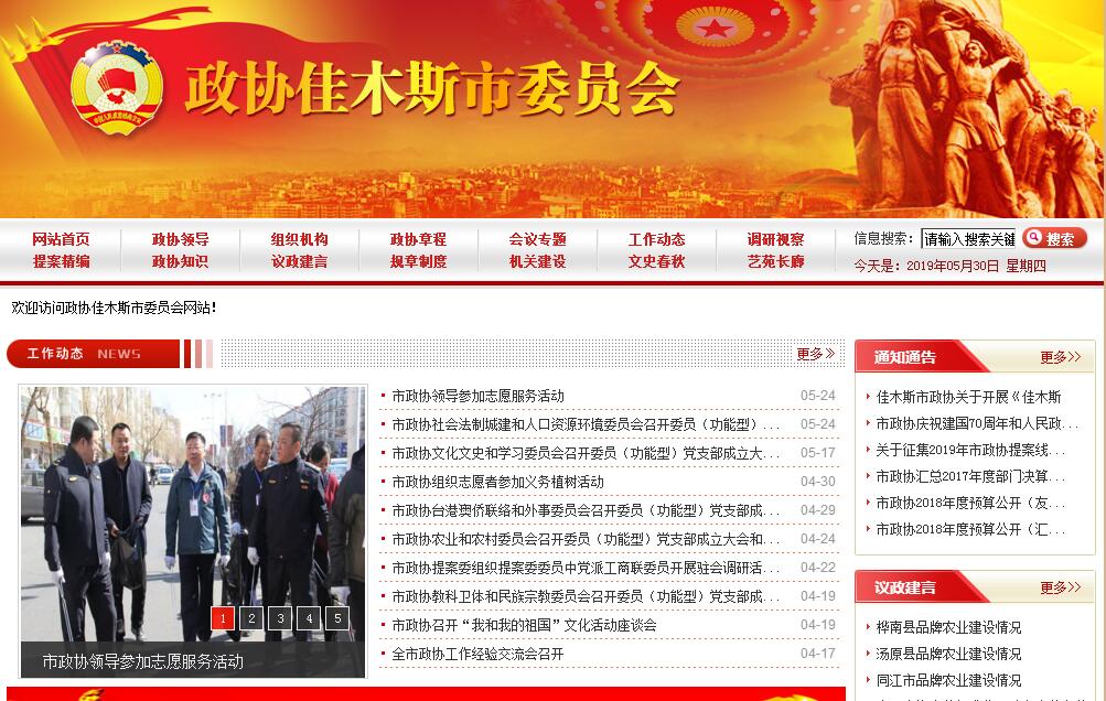 佳木斯市政協(xié)為正廳級單位,正廳級領導職數(shù)1個,職位為市政協(xié)主席,副廳級領導職數(shù)9個,職位為副主席(9人)。政協(xié)機關共有行政編制40個,工勤編制5個。機關共設8個正處級部門,分別為:經(jīng)濟委員會、臺港澳僑聯(lián)絡外事委員會、社會法制城建委員會、提案委員會、科教文衛(wèi)民族委員會、學習宣傳文史委員會、辦公室、機關黨委。目前,市政協(xié)共有常委73人(含市政協(xié)主席、副主席、秘書長),其中非中共常委43人,占常委總數(shù)58.9%。委員386人,其中非中共委員238人,占委員總數(shù)61.7%。其主要職責是:1、負責組織實施政協(xié)章程規(guī)定的任務和全國委員會所作的全國性決議,履行“政治協(xié)商、民主監(jiān)督、參政議政”職能;2、負責組織實施委員視察、調(diào)查、考察、評議、學習培訓、研討、編輯文史資料及委員隊伍建設,收集委員提案,反映社情民意和各界人士的意見、建議;3、堅持中國共產(chǎn)黨領導的多黨合作和政治協(xié)商制度。研究統(tǒng)一戰(zhàn)線和人民政協(xié)的理論政策,總結政協(xié)工作經(jīng)驗和政協(xié)對外宣傳工作;4、負責與市政協(xié)有關的對外友好交往和臺、港、澳及僑胞的聯(lián)絡工作;5、負責市委交辦的其它工作。
