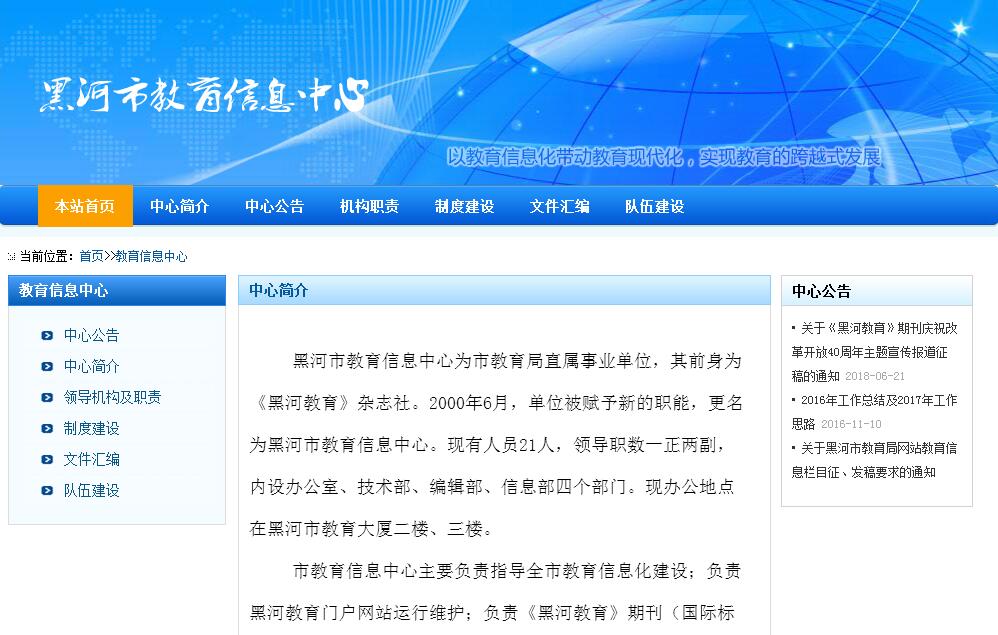 | 網站名稱: | 黑河市教育信息中心 | ||