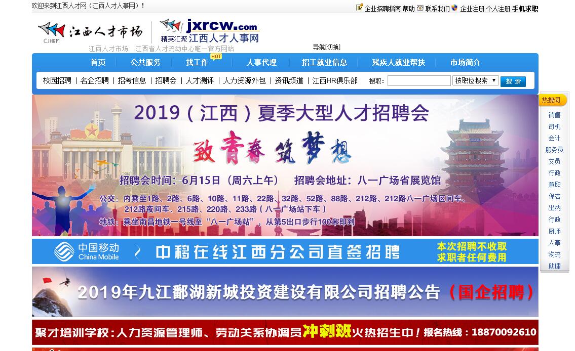 中國江西人才市場是由國家人事部與江西省人民政府共同組建的國家級區(qū)域性人才市場,是江西省人事廳直屬的人才服務(wù)機構(gòu),是全省人才中介機構(gòu)中功能全、業(yè)務(wù)廣、環(huán)境優(yōu)的人才市場。市場的目標是"立足江西,輻射全國,為各類人才提供滿意的服務(wù)"。市場內(nèi)設(shè)人才招聘部(高級人才部)、人才評薦部、代理派遣部、代理服務(wù)部、派遣服務(wù)部、人才信息部(人才人事網(wǎng))、人才培訓(xùn)部、國際交流部、開發(fā)經(jīng)營部、黨委工作部、綜合管理部等12個工作部門。江西人才人事網(wǎng)由江西省人力資源和社會保障廳(原江西省人事廳)主辦,是中國江西人才市場的網(wǎng)上服務(wù)窗口,也是我省最成熟、最具影響力的專業(yè)人才網(wǎng)站。網(wǎng)站提供包括網(wǎng)站、報紙、電臺、電視、社區(qū)媒介等多媒體全方位一體化發(fā)布途徑,并與全省設(shè)區(qū)市人才市場聯(lián)網(wǎng),現(xiàn)擁有50余萬人才簡歷,每日主頁平均瀏覽量22萬余次(網(wǎng)民訪問流量居全省專業(yè)網(wǎng)站第一名),招聘單位會員52000余家。網(wǎng)站影響力覆蓋全省,輻射華東、華南、華中,是中南地區(qū)重要的人才交流信息港之一。Jxrcw.com依托國家級人才市場中國江西人才市場,為人才供求雙方提供多樣化服務(wù)。為用人單位提供招聘信息發(fā)布,簡歷篩選、人才推薦、高級人才獵頭、人事代理、人才測評、人才培訓(xùn)、人才派遣等優(yōu)質(zhì)HR解決方案,為求職者提供各類人才職業(yè)發(fā)展有關(guān)的豐富信息,包括最新職位、培訓(xùn)、職業(yè)指導(dǎo)信息以及其他個性化增值服務(wù);與人才共同成長是我們的服務(wù)宗旨。人才信息量大、影響覆蓋面廣、招聘效果好、投入少回報多、人才匹配信息化是我們的服務(wù)特色,竭誠歡迎廣大企事業(yè)單位來我站招聘人才!企業(yè)在我站招聘主要有會員服務(wù)和網(wǎng)絡(luò)廣告兩種基本形式,其它的特色服務(wù)還有中高級人才獵頭、人才培訓(xùn)等。