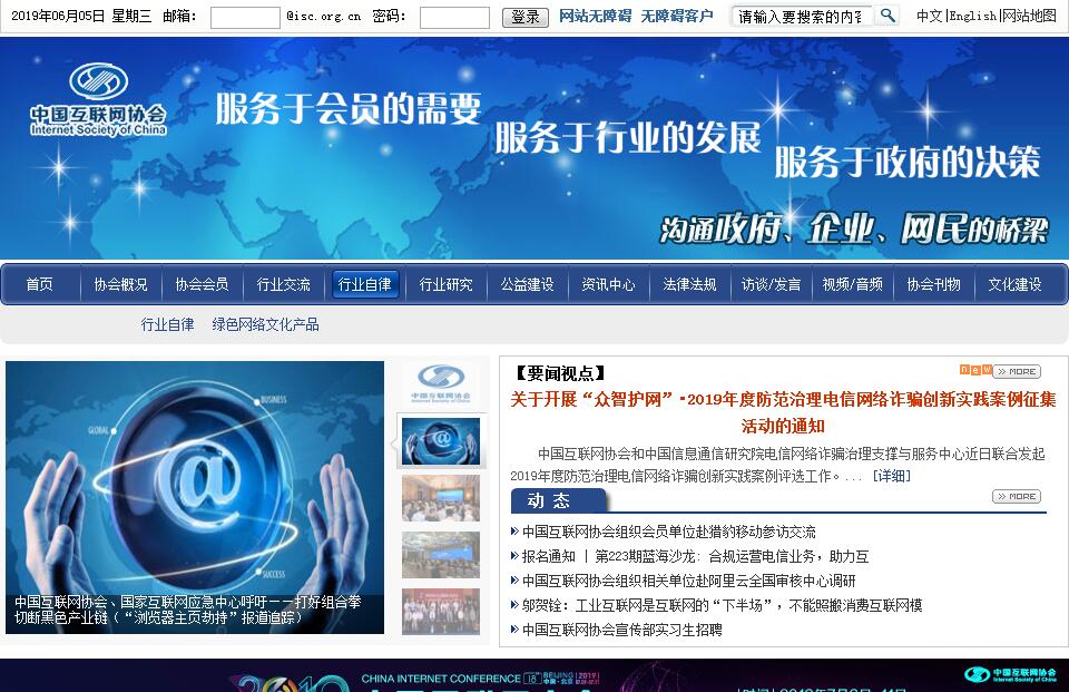 中國互聯(lián)網(wǎng)協(xié)會成立于2001年5月25日,由國內(nèi)從事互聯(lián)網(wǎng)行業(yè)的網(wǎng)絡(luò)運營商、服務(wù)提供商、設(shè)備制造商、系統(tǒng)集成商以及科研、教育機構(gòu)等70多家互聯(lián)網(wǎng)從業(yè)者共同發(fā)起成立,是由中國互聯(lián)網(wǎng)行業(yè)及與互聯(lián)網(wǎng)相關(guān)的企事業(yè)單位自愿結(jié)成的行業(yè)性的全國性的非營利性的社會組織。中國互聯(lián)網(wǎng)協(xié)會現(xiàn)任理事長為原中國工程院副院長鄔賀銓院士,現(xiàn)有會員1000多個,協(xié)會的業(yè)務(wù)主管單位是工業(yè)和信息化部,會址設(shè)在北京市。中國互聯(lián)網(wǎng)協(xié)會的會員是依法成立的與互聯(lián)網(wǎng)行業(yè)相關(guān)的企業(yè)、事業(yè)單位及社會團體,并且愿意加入中國互聯(lián)網(wǎng)協(xié)會,遵守協(xié)會章程。中國互聯(lián)網(wǎng)協(xié)會的宗旨是:遵守國家憲法、法律和法規(guī),遵守社會道德風尚;堅持以創(chuàng)新的思維、協(xié)作的文化、開放的平臺,有效的服務(wù)的指導(dǎo)思想,為會員的需要服務(wù),為行業(yè)發(fā)展服務(wù),為政府決策服務(wù)。中國互聯(lián)網(wǎng)協(xié)會的基本任務(wù)是:(一)團結(jié)互聯(lián)網(wǎng)行業(yè)相關(guān)企業(yè)、事業(yè)單位和社會團體,向政府主管部門反映會員和業(yè)界的愿望及合理要求,向會員宣傳國家相關(guān)政策、法律、法規(guī)。(二)制訂并實施互聯(lián)網(wǎng)行業(yè)規(guī)范和自律公約,協(xié)調(diào)會員之間的關(guān)系,促進會員之間的溝通與協(xié)作,充分發(fā)揮行業(yè)自律作用,維護國家信息安全,維護行業(yè)整體利益和用戶利益,促進行業(yè)服務(wù)質(zhì)量的提高。(三)開展我國互聯(lián)網(wǎng)行業(yè)發(fā)展狀況的調(diào)查與研究工作,促進互聯(lián)網(wǎng)的發(fā)展和普及應(yīng)用,向政府有關(guān)部門提出行業(yè)發(fā)展的政策建議。(四)組織開展有益于互聯(lián)網(wǎng)發(fā)展的研討、論壇等活動,促進互聯(lián)網(wǎng)行業(yè)內(nèi)的交流與合作,發(fā)揮互聯(lián)網(wǎng)對我國社會、經(jīng)濟、文化發(fā)展的積極作用。(五)積極開展國際交流與合作,組織國內(nèi)互聯(lián)網(wǎng)相關(guān)企事業(yè)單位參與國際互聯(lián)網(wǎng)有關(guān)組織的活動,在國際互聯(lián)網(wǎng)事務(wù)中發(fā)揮積極作用。(六)辦好協(xié)會網(wǎng)站、刊物,組織編撰出版中國互聯(lián)網(wǎng)發(fā)展狀況年度報告,為業(yè)界提供互聯(lián)網(wǎng)信息服務(wù)。(七)承擔會員單位或政府有關(guān)部門委托的其他事項。