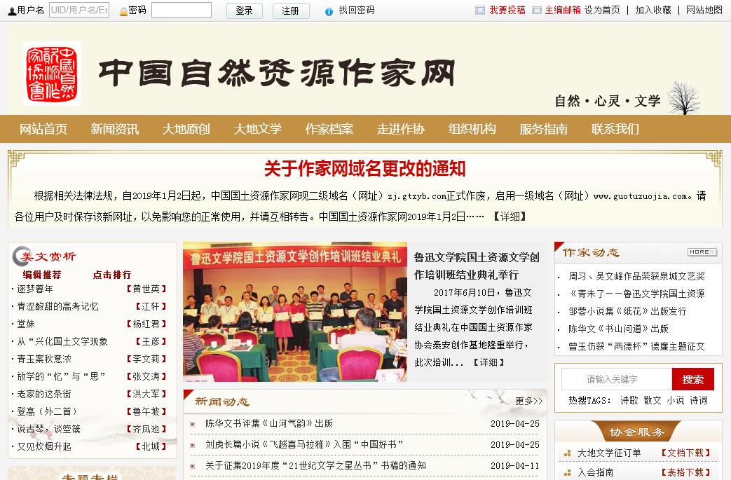中國自然資源作家協(xié)會的前身是中國地質(zhì)作家協(xié)會,是根椐老部長孫大光的提議于1989年12月24日在京成立,中宣部、中國作協(xié)、中華全國總工會的領(lǐng)導(dǎo)出席了成立大會,現(xiàn)有會員和中國作協(xié)會員情況也有變化,是中國作家協(xié)會的團體會員單位。會刊為《大地文學(xué)》雙月刊,協(xié)會網(wǎng)站:中國國土資源作家網(wǎng),網(wǎng)站地址:www.guotuzuojia.com。1998年,四部委合并時,掛靠中國礦聯(lián),曾更名為中國礦業(yè)作協(xié),但是,從地質(zhì)作協(xié)成立之日起,作協(xié)便組織放大會員深入生產(chǎn)第一線采風(fēng),相繼創(chuàng)作出一批批在中國文壇上有影響的地質(zhì)題材作品,如《共和國不會忘記》《走向圣殿》《昆侖感悟》《男兒要遠(yuǎn)行》《人生無模式》等作品,分另榮獲國家政府獎、當(dāng)代文學(xué)獎、夏衍文學(xué)獎等。國土資源部組建后,廣大會員根椐老部長孫大光“擴大你們的創(chuàng)作領(lǐng)域,要寫好國土資源題材的作品”指示精神,組織并號召作家紛紛深入到土地、海洋、測繪和新輪國土資源大調(diào)查項目中,創(chuàng)作出反映21世紀(jì)中國地質(zhì)工作新貌的5卷本100萬字的長篇報告文學(xué)《地質(zhì)之歌》叢書;撰寫了反映當(dāng)前土地問題的中篇紀(jì)實文學(xué)《國土之觴》在上海的一家大型文學(xué)雜志上發(fā)表后引起了轟動;為了記錄我部在老區(qū)的扶貧工作,寫出扶貧文學(xué)《不老沅水情》;為配合全國礦業(yè)秩序整頓創(chuàng)作出17集電視連續(xù)劇《呼嘯的山野》;配合部機關(guān)黨委撰寫6位先進人物的報告文學(xué)《先鋒之歌》;并完成了部里交辦的孫大光傳記《倔強人生》的創(chuàng)作任務(wù)。2010年,經(jīng)國土資源部批準(zhǔn),中國國土資源作家協(xié)會由中國國土資源報社主管,辦公地點變更為北京市西城區(qū)羊肉胡同甲三十號5樓。2018年,經(jīng)上級主管單位批準(zhǔn),中國國土資源作家協(xié)會正式更名為中國自然資源作家協(xié)會,由中國國土資源報社主管,辦公地點變更為北京市西城區(qū)復(fù)興門外大街1號。