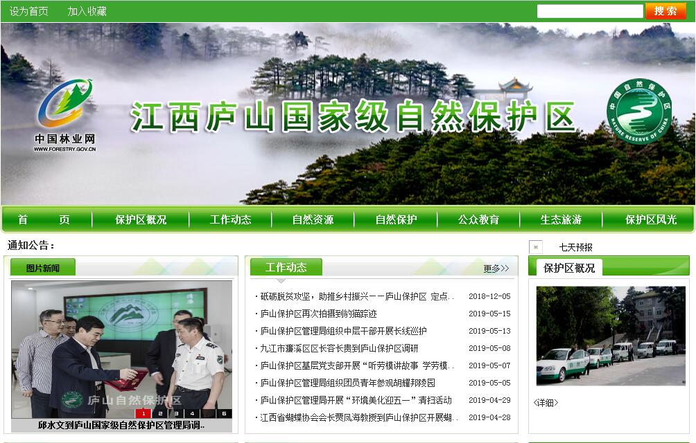 江西廬山國家級自然保護(hù)區(qū),始建于1981年8月,是經(jīng)江西省人民政府批準(zhǔn)成立的首批省級自然保護(hù)區(qū)。2013年6月,廬山自然保護(hù)區(qū)正式晉升為國家級自然保護(hù)區(qū)。保護(hù)區(qū)總面積20120.0公頃,是江西省林業(yè)廳直屬的正處級事業(yè)單位, 保護(hù)區(qū)系森林生態(tài)類型保護(hù)區(qū),主要保護(hù)對象是森林生態(tài)景觀、野生動植物、自然歷史遺跡和文化遺產(chǎn)。建區(qū)以來,已進(jìn)行了大量的基礎(chǔ)建設(shè),并建立了比較完善的管理機(jī)構(gòu)和一整套管理機(jī)制,管理局內(nèi)設(shè)辦公室、資源管理科、科研宣教科,下設(shè)6個保護(hù)管理站和高山樹種研究所。保護(hù)區(qū)管理局和保護(hù)管理站已基本具備管理所需要的辦公、保護(hù)、科研、宣傳教育、交通通訊、生活用房等設(shè)施,全局已有近5千平方米的辦公及附屬用房,管理局和各保護(hù)管理站均配置了現(xiàn)代化的辦公設(shè)備,分別在威家、通遠(yuǎn)、歸宗三個保護(hù)管理站建立了有害生物檢測中心,配備了顯微鏡等監(jiān)測設(shè)備。江西廬山國家級自然保護(hù)區(qū)地處長江南岸,鄱陽湖西畔,位于長江與鄱陽湖交匯處,是長江中下游大平原上的“生態(tài)交匯島”,也是候鳥遷徙路線上重要的越冬地、停歇地和候鳥遷徙“導(dǎo)航塔”。保護(hù)區(qū)大體以廬山山麓環(huán)山公路為界,地跨廬山市、柴桑區(qū)、濂溪區(qū)和廬山風(fēng)景名勝區(qū),保護(hù)區(qū)內(nèi)的地貌成因類型較為獨(dú)特,由斷塊山構(gòu)造地貌、冰蝕地貌、流水侵蝕地貌和山麓冰川堆積垅崗地貌疊加而成的復(fù)合地貌為特色。廬山最高峰大漢陽峰海拔1474米,最低山麓海拔只有23米。廬山自然保護(hù)區(qū)地處亞熱帶季風(fēng)濕潤氣候區(qū),氣候總的特征是:冬長夏短、春遲秋早、風(fēng)大、降水及云霧多,全年有霧日191.9天,使之常年云騰霧繞,體現(xiàn)了“不識廬山真面目”的妙意所在。由于立體氣候明顯,這就呈現(xiàn)出“山腳盛夏山嶺春,山麓艷秋山頂冰”的奇特景象。廬山自然保護(hù)區(qū)在“中國植被區(qū)劃”上屬亞熱帶常綠闊葉林區(qū)域,東部常綠闊葉林亞區(qū)域,中亞熱帶常綠闊葉林地帶。區(qū)內(nèi)植被覆蓋率高,植被類型多樣,保護(hù)區(qū)處于中亞熱帶常綠闊葉林與北亞熱帶常綠落葉闊葉混交林的交匯處,有著比較完整的中山森林生態(tài)系統(tǒng)。有序的生態(tài)梯度分布,獨(dú)立的植被發(fā)育體系,孕育了多樣化的植物群落與物種。保護(hù)區(qū)已查明本土高等植物2475種,隸屬270科730屬,分布有珍稀瀕危植物200余種。廬山保護(hù)區(qū)在歷史上動物資源也很豐富,保護(hù)區(qū)已查明脊椎動物364種,分布有珍稀野生動物120余種。廬山自然保護(hù)區(qū)的建立,對于保護(hù)廬山生物種源、風(fēng)景資源、名勝古跡、文化遺產(chǎn)、冰川地貌和自然環(huán)境,維護(hù)生態(tài)平衡,具有重要的現(xiàn)實意義和歷史意義,它將一定能夠在全區(qū)人民的共同努力下,建設(shè)成為儲存物種的寶庫、科學(xué)研究的基地、環(huán)境優(yōu)美的樂園。