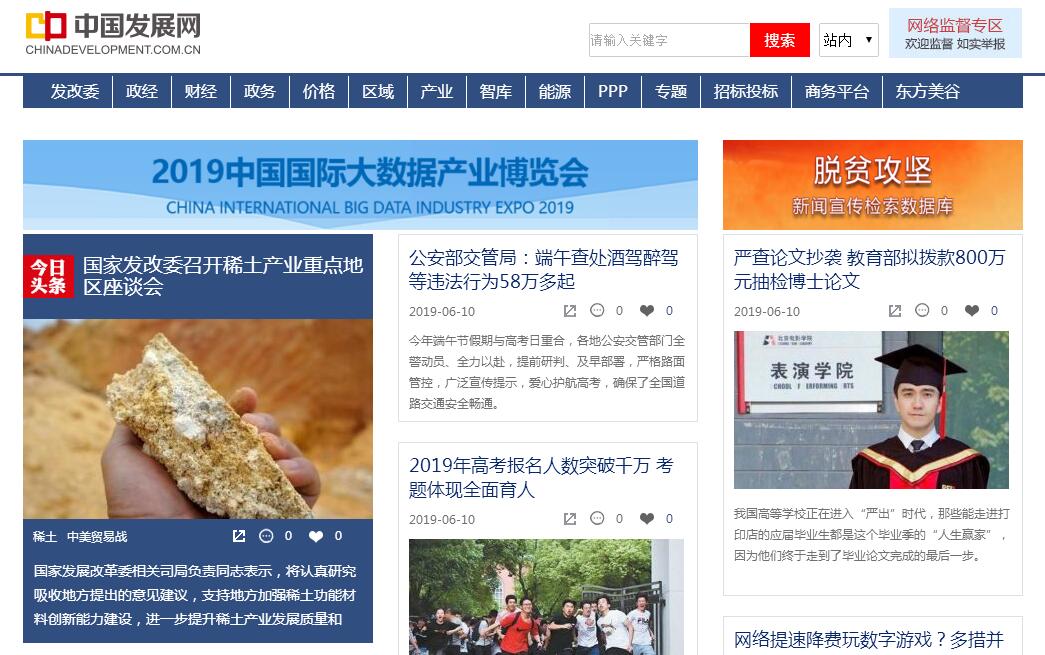 中國發(fā)展網(wǎng)(www.chinadevelopment.com.cn)是經(jīng)國家互聯(lián)網(wǎng)信息辦公室批準(zhǔn),由國家發(fā)展改革委主管、中國經(jīng)濟(jì)導(dǎo)報(bào)社主辦的新聞信息服務(wù)網(wǎng)站,是集新聞性與服務(wù)性于一體的專業(yè)化網(wǎng)絡(luò)新聞信息平臺(tái),是全國發(fā)展改革系統(tǒng)對(duì)外網(wǎng)絡(luò)宣傳和信息服務(wù)的重要窗口。中國發(fā)展網(wǎng)主要業(yè)務(wù)基于國務(wù)院新聞辦的批準(zhǔn),播發(fā)新聞信息,提供電子公告等新聞信息服務(wù);基于國家發(fā)展改革委所賦予導(dǎo)報(bào)社職能,提供更符合新聞傳播規(guī)律的全國發(fā)展改革及物價(jià)系統(tǒng)的新聞信息服務(wù);基于國家發(fā)展改革委所賦予的招標(biāo)公告、企業(yè)債券公告和價(jià)格公告等特許政務(wù)信息發(fā)布職能,建設(shè)相關(guān)信息數(shù)據(jù)庫及與此相關(guān)的行業(yè)信息和企業(yè)信息等數(shù)據(jù)庫,為目標(biāo)人群提供更具價(jià)值的數(shù)據(jù)處理服務(wù)。