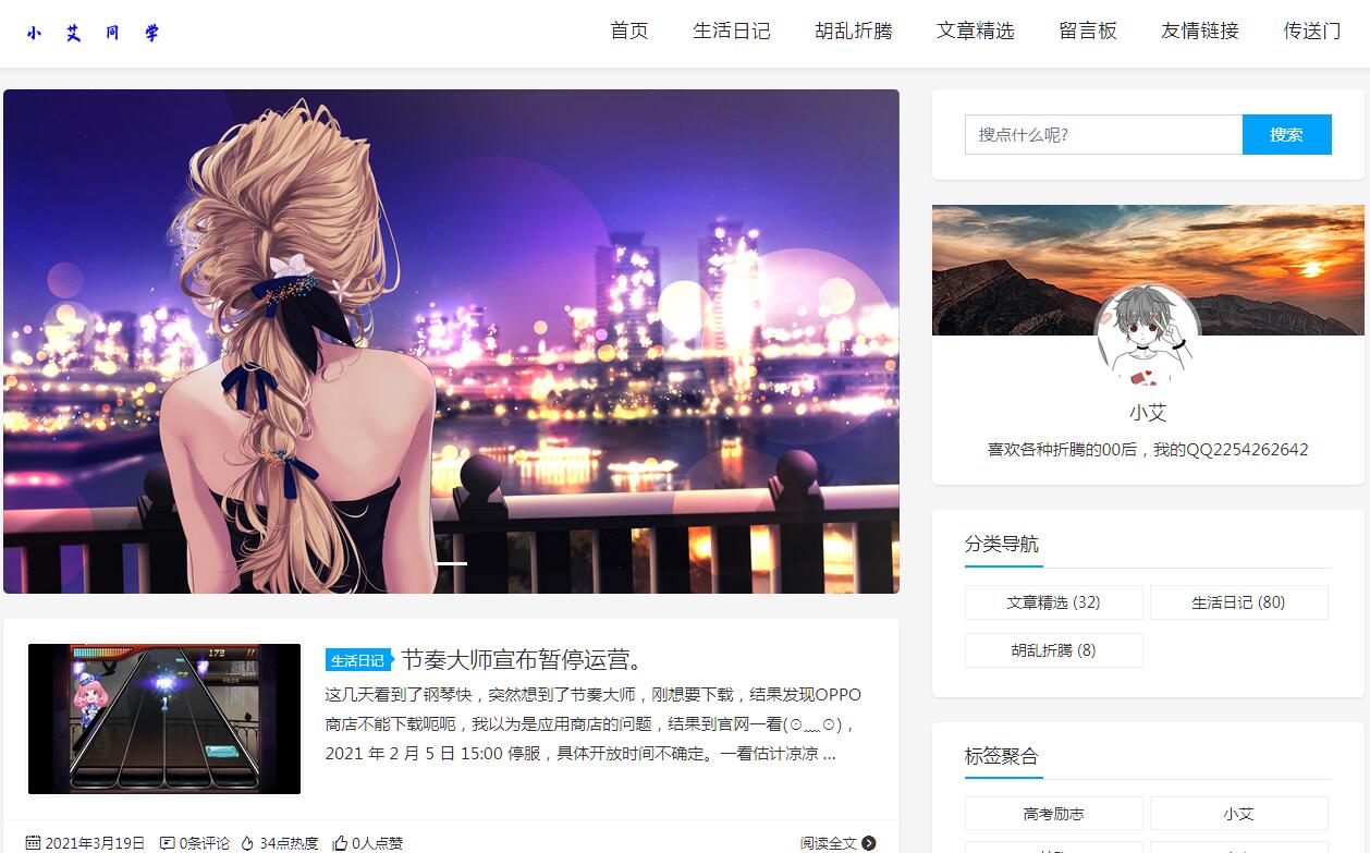 | 網(wǎng)站簡(jiǎn)介: 小艾同學(xué)一個(gè)不喜歡被約束的少年,分享生活模板分享技術(shù)博客高考勵(lì)志視頻等等。 |