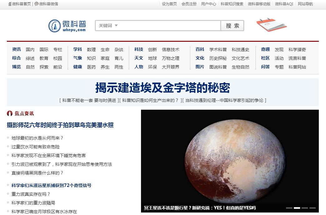 | 網(wǎng)站簡介: 微科普,是專注于科普知識傳播的高層次科普網(wǎng)站。微科普以分享科普知識為宗旨,致力于構(gòu)建權(quán)威的科普知識數(shù)據(jù)庫,以“成為中國科普網(wǎng)站中的一面鏡子”為出發(fā)點,提供負(fù)責(zé)任、有趣、權(quán)威的科普知識,向關(guān)注中國科普類資訊的公眾提供科普知識的傳播與服務(wù)。微科普是《全球智慧數(shù)據(jù)平臺(GSD)》數(shù)據(jù)源網(wǎng)站,據(jù)《新聞研究導(dǎo)刊》的相關(guān)文獻報道,微科普與果殼網(wǎng)、科學(xué)松鼠會一起并稱為我國三大科普網(wǎng)站。 |