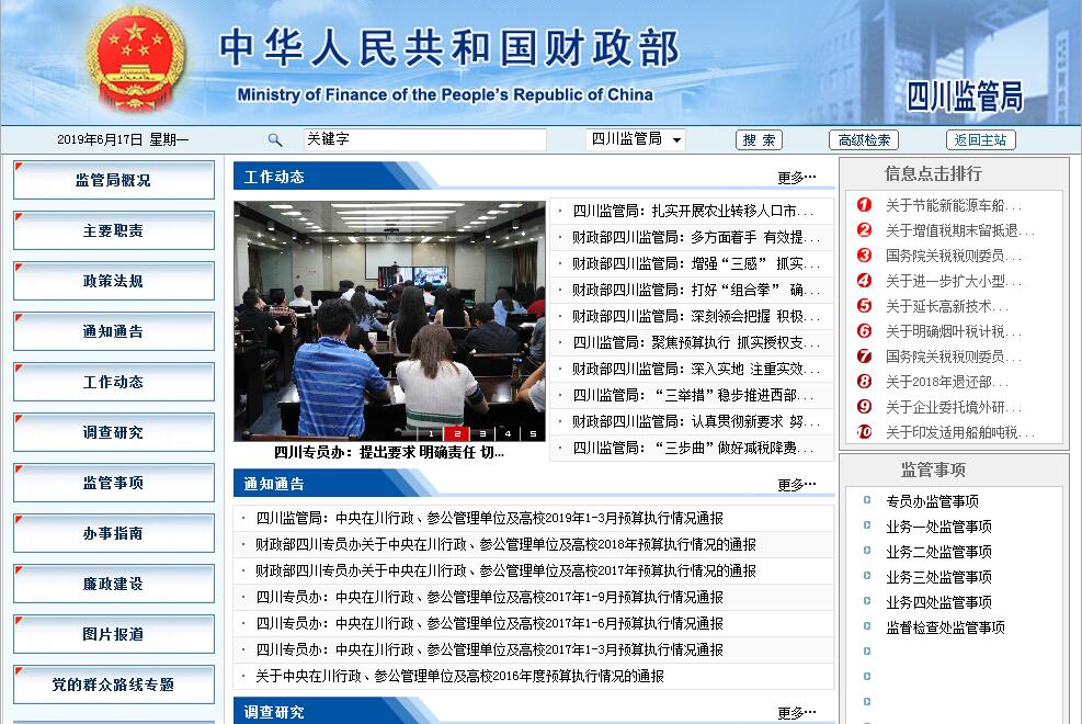 財政部四川監(jiān)管局主要職責:一、貫徹落實黨中央關于財經工作的方針政策和決策部署,在履行職責過程中堅持和加強黨對財政工作的集中統(tǒng)一領導,履行全面從嚴治黨責任。二、調查研究屬地經濟發(fā)展形勢和財政運行狀況。根據(jù)財政部授權管理屬地中央各項財政收支,承擔財稅法規(guī)和政策在屬地的執(zhí)行情況、預算管理有關監(jiān)督工作,向財政部提出相關政策建議。三、對屬地中央預算單位預決算編制情況進行評估并向財政部提出審核意見。根據(jù)財政部授權對屬地中央預算單位預算執(zhí)行情況進行監(jiān)控及分析預測。組織對中央重大財稅政策和專項轉移支付在屬地的執(zhí)行情況進行績效評價,提出相關改進措施建議并跟蹤落實。四、根據(jù)財政部授權對地方政府債務實施監(jiān)控,嚴控法定限額內債務風險,防控隱性債務風險,發(fā)現(xiàn)風險隱患及時提出改進和處理意見并向財政部、地方人民政府反映報告。五、按規(guī)定權限審核審批屬地中央行政事業(yè)單位國有資產配置、處置等事項。根據(jù)財政部授權監(jiān)管屬地中央金融企業(yè)執(zhí)行財務制度等情況。六、根據(jù)財政部統(tǒng)一部署,承擔有關會計信息質量、注冊會計師行業(yè)執(zhí)業(yè)質量、資產評估行業(yè)執(zhí)業(yè)質量監(jiān)督檢查工作,參與跨境會計監(jiān)管合作。七、完成財政部交辦的其他任務。