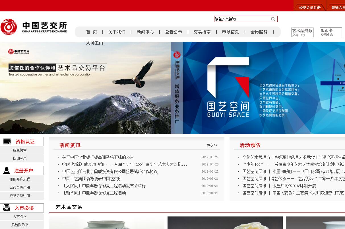 中國工藝藝術品交易所有限公司(以下簡稱中國藝交所)是為落實中央關于文化大發(fā)展大繁榮的戰(zhàn)略部署,由中央企業(yè)——中國工藝集團有限公司發(fā)起、中央文資辦國家文化發(fā)展基金資助、全國清理整頓各類交易場所部際聯(lián)席會議批準設立的全國性藝術品現(xiàn)貨交易平臺。中國藝交所秉承“為中華文化傳承服務,為文化產(chǎn)業(yè)發(fā)展服務”的宗旨,通過與第三方服務機構(gòu)深度合作,積極探索“藝術+金融+科技”的創(chuàng)新發(fā)展模式,充分發(fā)揮行業(yè)優(yōu)勢和稅率優(yōu)勢,為藝術品市場提供確權公證、鑒定估值、保管保險、展覽展示、見證交易、資金清算、藝術品登記、質(zhì)押融資等一站式藝術金融服務。目前已形成藝術品交易、高端文創(chuàng)產(chǎn)品開發(fā)、藝術銀行、老電影修復發(fā)行、人才選拔培訓、文化項目咨詢和衍生業(yè)務服務等業(yè)務板塊。作為中央國有資本發(fā)起設立的文化藝術類交易所,中國藝交所緊緊圍繞文化藝術品流通服務,助力實體經(jīng)濟發(fā)展,全力打造藝術品創(chuàng)作者、投資者和收藏者滿意和信賴的藝術品財富管理綜合服務平臺。