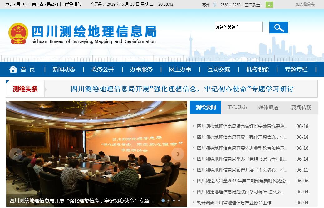 四川測繪地理信息局(四川省測繪地理信息局)組建于1960年,是自然資源部派出機構(gòu)和四川省測繪地理信息主管部門,承擔(dān)自然資源部下達(dá)的工作任務(wù),履行四川省人民政府賦予的工作職責(zé)。全局現(xiàn)有職工約2000人,其中專業(yè)技術(shù)人員1200余人。直屬事業(yè)單位9個:自然資源部第三大地測量隊(四川省第一測繪工程院)、自然資源部第三地理信息制圖院(四川省第二測繪地理信息工程院)、自然資源部第六地形測量隊(自然資源部地下管線勘測工程院、四川省第三測繪工程院)、自然資源部第三航測遙感院、自然資源部四川基礎(chǔ)地理信息中心(自然資源部四川測繪資料檔案館)、自然資源部四川測繪產(chǎn)品質(zhì)量監(jiān)督檢驗站(四川省測繪產(chǎn)品質(zhì)量監(jiān)督檢驗站)、四川測繪地理信息局測繪技術(shù)服務(wù)中心、成都測繪職工中等專業(yè)學(xué)校(西南測繪職工培訓(xùn)中心、武漢測繪科技大學(xué)西南函授站),全局形成了大地測量、攝影測量與遙感、地理信息系統(tǒng)、地下管線勘測、工程測量、地籍測量、地圖編印出版、互聯(lián)網(wǎng)地圖服務(wù)以及測繪成果管理與供應(yīng)、測繪產(chǎn)品監(jiān)督與檢驗、測繪技術(shù)教育與培訓(xùn)、測繪應(yīng)急保障等門類齊全的測繪地理信息綜合服務(wù)體系。其主要職責(zé)是:一、貫徹執(zhí)行國家測繪地理信息法律法規(guī)和政策,會同有關(guān)部門對執(zhí)行情況進行監(jiān)督檢查;研究擬訂測繪地理信息相關(guān)的地方性法規(guī)、規(guī)章草案;負(fù)責(zé)全省測繪地理信息法制建設(shè)和法制宣傳教育工作;負(fù)責(zé)全省測繪地理信息行政管理人員的行政執(zhí)法培訓(xùn)和行政執(zhí)法工作,提高本系統(tǒng)、本部門依法行政水平;依法查處權(quán)限范圍內(nèi)的各類測繪地理信息違法案件;組織開展行政執(zhí)法監(jiān)督、行政調(diào)解等工作,落實行政執(zhí)法責(zé)任制,負(fù)責(zé)有關(guān)的行政復(fù)議工作。二、負(fù)責(zé)管理全省基礎(chǔ)測繪工作,會同省政府有關(guān)部門編制全省基礎(chǔ)測繪規(guī)劃、重大測繪項目計劃和年度計劃并組織實施。三、負(fù)責(zé)全省中等以下城市和因建設(shè)、城市規(guī)劃、科學(xué)研究確需建設(shè)相對獨立的平面坐標(biāo)系統(tǒng)的審批工作;負(fù)責(zé)組織擬訂全省用于測繪的航空攝影與衛(wèi)星遙感計劃,統(tǒng)一管理全省航空攝影與衛(wèi)星遙感資料,協(xié)調(diào)數(shù)據(jù)的預(yù)處理與分發(fā)服務(wù);負(fù)責(zé)全省以測繪為目的的航空攝影與遙感的審查。四、依法管理全省測繪市場。監(jiān)督管理地理信息獲取與應(yīng)用;負(fù)責(zé)全省從事測繪活動單位的測繪資質(zhì)審查、發(fā)放資質(zhì)證書;負(fù)責(zé)全省測繪從業(yè)人員測繪作業(yè)證的發(fā)放、管理;負(fù)責(zé)省外測繪單位、外國的組織或個人在我省行政區(qū)域內(nèi)從事測繪活動的驗證、備案工作;負(fù)責(zé)監(jiān)督省內(nèi)重大測繪項目、重點測繪工程的招標(biāo)投標(biāo)。五、會同省政府土地行政主管部門編制全省地籍測繪規(guī)劃,按照地籍測繪規(guī)劃組織管理全省地籍測繪;按照國務(wù)院有關(guān)規(guī)定組織管理全省各級行政區(qū)域界線測繪工作,與省政府民政部門共同擬訂省內(nèi)鄉(xiāng)級行政區(qū)域界線的標(biāo)準(zhǔn)畫法圖,報省政府批準(zhǔn)后發(fā)布;監(jiān)督管理全省房產(chǎn)測繪工作。六、負(fù)責(zé)管理全省地圖編制出版工作,審核我省行政區(qū)域內(nèi)的公開地圖、內(nèi)部地圖、保密地圖和繪有中國圖形的示意圖;管理并審核地名在地圖上的表示;依法監(jiān)督管理全省地圖市場。七、管理全省基礎(chǔ)地理信息數(shù)據(jù)。組織提供測繪公共服務(wù)和應(yīng)急測繪保障,組織指導(dǎo)全省基礎(chǔ)地理信息社會化服務(wù);建立健全我省地理信息資源共建共享機制,構(gòu)建和管理我省基礎(chǔ)地理信息公共平臺;組織協(xié)調(diào)地理信息安全監(jiān)管工作;審核發(fā)布我省行政區(qū)域內(nèi)的重要地理信息數(shù)據(jù)。八、組織全省測繪成果接收、收集、整理、儲存并定期編制、公布測繪成果目錄;負(fù)責(zé)測繪成果密級管理;負(fù)責(zé)審批涉及國家秘密基礎(chǔ)測繪成果的提供使用和對外提供測繪成果的審批;負(fù)責(zé)管理全省測繪行業(yè)標(biāo)準(zhǔn)化工作和根據(jù)授權(quán)管理測繪行業(yè)的計量工作;負(fù)責(zé)全省測繪成果的質(zhì)量監(jiān)督,處理測繪成果質(zhì)量爭議。 九、負(fù)責(zé)指導(dǎo)全省測量標(biāo)志的管理和保護工作,審批永久性測量標(biāo)志的拆遷。十、研究制定全省測繪技術(shù)政策。組織全省重大測繪科技項目攻關(guān)、科技成果轉(zhuǎn)化,負(fù)責(zé)省測繪科技進步獎相關(guān)工作;歸口管理省級對外測繪科技和經(jīng)濟合作交流;配合有關(guān)部門組織全省測繪專業(yè)技術(shù)職務(wù)任職資格的評審工作;會同有關(guān)部門按職責(zé)分工負(fù)責(zé)全省注冊測繪師制度的實施與監(jiān)督管理;負(fù)責(zé)組織全省測繪行業(yè)特有工種職業(yè)技能鑒定工作。十一、指導(dǎo)市(州)、縣(市、區(qū))