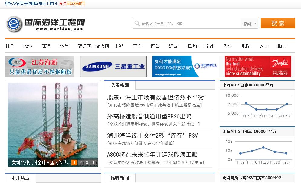 國(guó)際海洋工程網(wǎng) (www.worldoe.com)由上海海櫻文化傳播有限公司運(yùn)作管理,是目前中國(guó)船舶行業(yè)訪問量最大、發(fā)展最快、影響力最大的行業(yè)門戶網(wǎng)站之一。作為船舶行業(yè)的信息服務(wù)商,國(guó)際海洋工程網(wǎng)借助現(xiàn)有的網(wǎng)絡(luò)平臺(tái),為廣大的航運(yùn)企業(yè)、船廠和設(shè)備生產(chǎn)企業(yè)、船級(jí)社、研發(fā)部門、政府部門等用戶提供了及時(shí)、快捷的政策、市場(chǎng)、價(jià)格、項(xiàng)目、設(shè)備和技術(shù)等信息服務(wù);在企業(yè)進(jìn)行市場(chǎng)拓展和宣傳方面,除網(wǎng)絡(luò)平臺(tái)外,國(guó)際船舶網(wǎng)還通過自身編輯出版的傳統(tǒng)紙媒體《國(guó)際船舶》雜志、《中國(guó)主要船廠分布圖》、《中國(guó)船廠手冊(cè)》、 《中國(guó)船舶配套產(chǎn)品手冊(cè)》等產(chǎn)品進(jìn)行整合互動(dòng)宣傳,為客戶提供完善的服務(wù),也使客戶獲得最大化的宣傳效果。