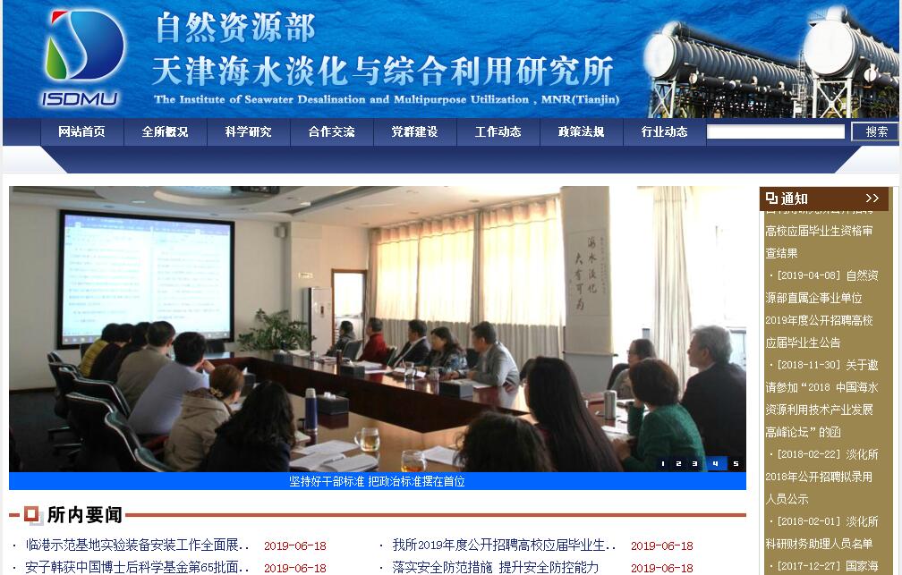 自然資源部天津海水淡化與綜合利用研究所1978年經(jīng)國務(wù)院批準(zhǔn)成立,是我國唯一專門從事海水利用(海水淡化、海水直接利用、海水化學(xué)資源利用、海水凈化與水再利用、膜科學(xué)、海水利用發(fā)展戰(zhàn)略、海水及苦咸水利用檢測與監(jiān)測、海島水資源保護(hù)與利用、防腐與水處理等)公益技術(shù)、共性技術(shù)、產(chǎn)業(yè)化關(guān)鍵技術(shù)和發(fā)展戰(zhàn)略研究的國家級(jí)公益類非營利性科研機(jī)構(gòu),是國家海水及苦咸水利用產(chǎn)品質(zhì)量監(jiān)督檢驗(yàn)中心、國家海水利用工程技術(shù)研究中心、海水淡化技術(shù)國家地方聯(lián)合工程實(shí)驗(yàn)室、全國海洋標(biāo)準(zhǔn)化技術(shù)委員會(huì)海水淡化及綜合利用分技術(shù)委員會(huì)、中國膜工業(yè)協(xié)會(huì)液體分離膜產(chǎn)品檢驗(yàn)檢測中心和環(huán)印聯(lián)盟(IORA)海水淡化技術(shù)協(xié)調(diào)中心、亞太脫鹽協(xié)會(huì)(APDA)秘書處依托單位。建所40年來,承擔(dān)完成國家科技攻關(guān)、863計(jì)劃、院所基金、高技術(shù)產(chǎn)業(yè)化專項(xiàng)以及省部級(jí)科技攻關(guān)等有關(guān)海水利用的重大科技項(xiàng)目百余項(xiàng),建成一批國家重大科技示范工程,技術(shù)支撐編制完成國家首部《海水利用專項(xiàng)規(guī)劃》和《海水利用標(biāo)準(zhǔn)發(fā)展計(jì)劃》,獲得國家和省部級(jí)科技獎(jiǎng)勵(lì)38項(xiàng)、國家專利200余項(xiàng),已發(fā)布國家及行業(yè)標(biāo)準(zhǔn)61項(xiàng)。具備國家海洋行業(yè)工程甲級(jí)設(shè)計(jì)資質(zhì)、工程咨詢甲級(jí)資信資格。通過ISO9001:2015質(zhì)量管理體系認(rèn)證和國家計(jì)量認(rèn)證,設(shè)有博士后科研工作站。
