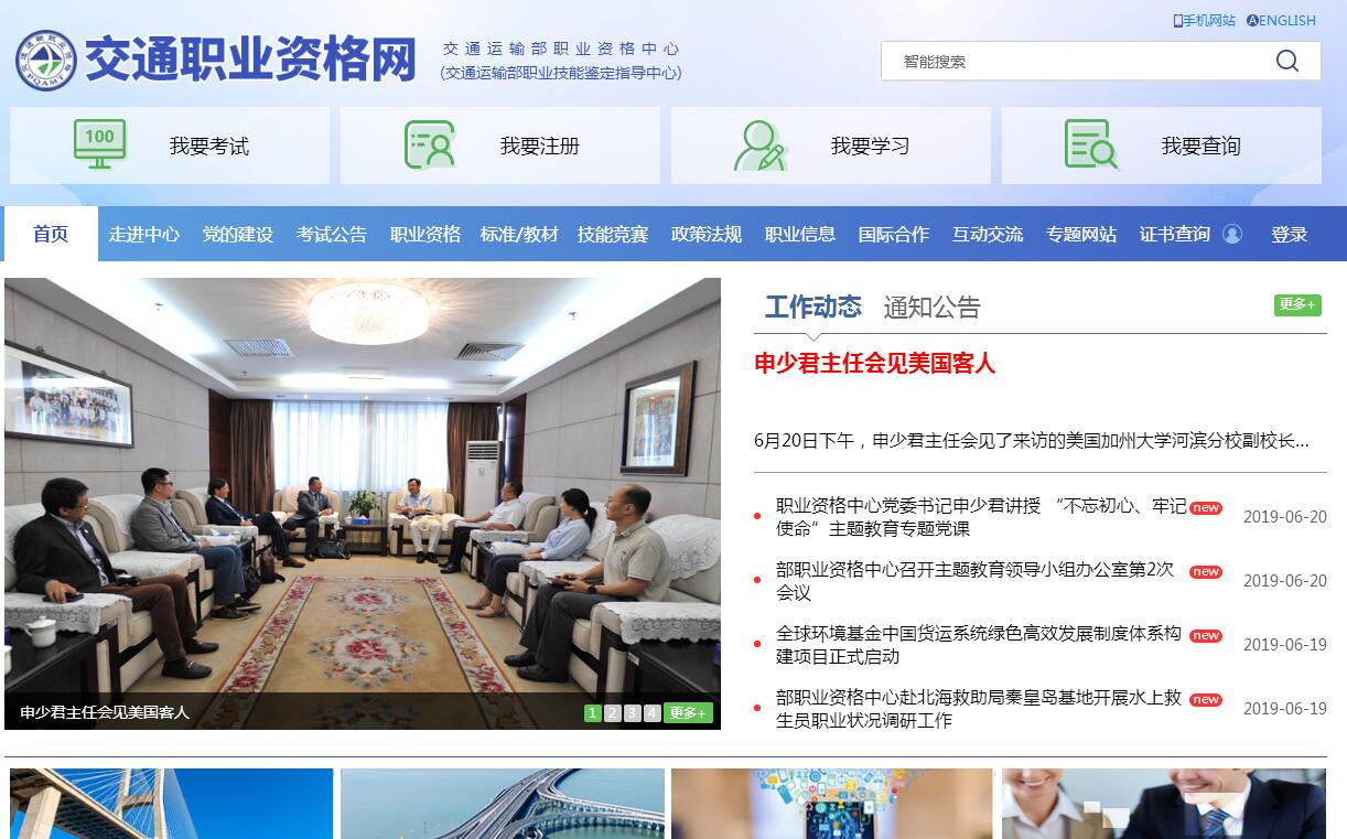 交通職業(yè)資格網(wǎng)由交通運(yùn)輸部職業(yè)資格中心主辦,是交通運(yùn)輸部職業(yè)資格工作綜合門戶網(wǎng)站,是社會(huì)公眾了解交通運(yùn)輸部職業(yè)資格工作的窗口,是交通運(yùn)輸從業(yè)人員參加職業(yè)資格考試(鑒定)、注冊(登記)、繼續(xù)教育和查詢成績、證書信息的一站式平臺(tái),是社會(huì)公眾了解交通運(yùn)輸職業(yè)發(fā)展動(dòng)態(tài)和觀察職業(yè)發(fā)展前沿、展望職業(yè)發(fā)展未來的信息平臺(tái)。中央機(jī)構(gòu)編制委員會(huì)辦公室2005年9月批準(zhǔn)成立交通專業(yè)人員資格評價(jià)中心,加掛交通部職業(yè)技能鑒定指導(dǎo)中心牌子。2011年4月,經(jīng)中央機(jī)構(gòu)編制委員會(huì)辦公室和交通運(yùn)輸部批準(zhǔn)更名為交通運(yùn)輸部職業(yè)資格中心,加掛交通運(yùn)輸部職業(yè)技能鑒定指導(dǎo)中心牌子。交通運(yùn)輸部職業(yè)資格中心為交通運(yùn)輸部直屬正局級事業(yè)單位,承擔(dān)交通運(yùn)輸行業(yè)職業(yè)資格制度建設(shè)、管理的職責(zé),組織開展交通運(yùn)輸行業(yè)從業(yè)人員的職業(yè)資格評價(jià)工作。其主要職責(zé)是:(一)負(fù)責(zé)擬定部職業(yè)資格和職業(yè)技能鑒定規(guī)劃、規(guī)章制度和實(shí)施辦法等;(二)組織實(shí)施交通行業(yè)職業(yè)資格的考核認(rèn)定和特有工種職業(yè)技能鑒定,指導(dǎo)職業(yè)資格制度建設(shè)及職業(yè)技能鑒定工作;(三)負(fù)責(zé)職業(yè)資格的注冊管理、考試大綱和教材編寫、考試命題和試題庫建設(shè)管理、考試培訓(xùn)機(jī)構(gòu)資格審核認(rèn)定、教育評估,繼續(xù)教育標(biāo)準(zhǔn)擬定等;(四)負(fù)責(zé)開展與國(境)外有關(guān)職業(yè)資格的互認(rèn);(五)承擔(dān)交通行業(yè)各專業(yè)技術(shù)崗位職業(yè)資格制度管理委員會(huì)辦公室和交通行業(yè)職業(yè)技能鑒定專家委員會(huì)辦公室的日常工作;(六)受部委托制訂交通行業(yè)特有工種職業(yè)技能標(biāo)準(zhǔn)和鑒定規(guī)范,負(fù)責(zé)組織編寫培訓(xùn)大綱和教材以及試題庫建設(shè)管理工作;(七)負(fù)責(zé)制定交通行業(yè)特有工種職業(yè)技能鑒定站建站條件、資格審查及職業(yè)技能鑒定考評員的資格要求,組織資格培訓(xùn)和考核;(八)負(fù)責(zé)建立交通行業(yè)技能人才庫,組織實(shí)施和管理技師、高級技師資格考評工作,組織交通行業(yè)職業(yè)技能競賽活動(dòng);(九)開展交通行業(yè)職業(yè)資格及有關(guān)問題的研究與咨詢服務(wù);(十)承辦上級主管部門交辦的其他工作。