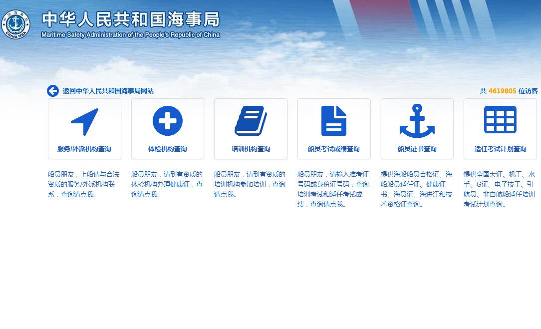 | 網(wǎng)站簡(jiǎn)介: 船員相關(guān)信息公開(kāi)查詢(xún)。 |