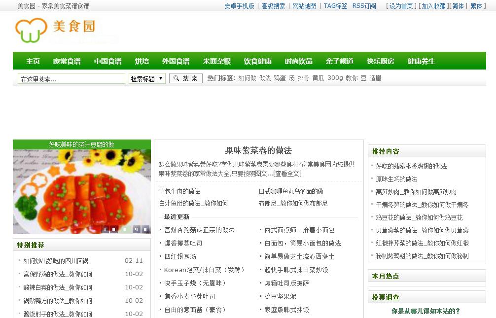 | 網(wǎng)站簡介: 美食園匯集了全國各地好吃的美食風(fēng)味,廣東菜、淮揚菜、東北菜、家常菜、粵菜、湘菜、川菜、豫菜等應(yīng)有盡有。 |