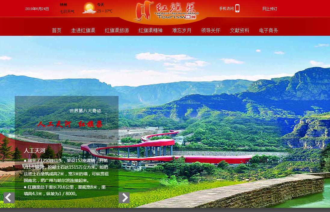 一渠繞群山,精神動天下。上世紀(jì)60年代,十萬開山者,歷時(shí)十年,絕壁穿石,挖渠千里,把中華民族的一面精神之旗,插在太行之巔。在具有”北雄風(fēng)光最勝處”的太行山上,紅旗渠像一條藍(lán)色飄帶纏繞其間。其工程之艱巨,工程美學(xué)價(jià)值之高,堪稱人間奇跡,形成了獨(dú)一無二的紅旗渠風(fēng)光。紅旗渠旅游黃金線路由紅旗渠分水苑和青年洞景區(qū)組成。分水苑景區(qū),紅旗渠總干渠到此一分為三條干渠,南去北往延伸林州腹地。1965年4月5日,紅旗渠總干渠竣工通水慶典在此舉行。苑區(qū)主軸景觀帶上分布著水利科普園、演藝廣場、紅旗渠紀(jì)念碑、中南海的翠柏、紅旗渠分水樞紐工程分水閘和紅旗 渠總干渠、一干渠、二干渠等,與紅旗渠紀(jì)念館一起構(gòu)成虛實(shí)結(jié)合的景觀群落,呈現(xiàn)出現(xiàn)代與古樸兼而得之的風(fēng)貌。紅旗渠紀(jì)念館通過515米長的展線,采用空間環(huán)境、雕塑、繪畫、多媒體等藝術(shù)手段,營造了再現(xiàn)歷史、觸摸歷史、穿越歷史、對話 歷史的效果與氛圍,從而使人們深刻感悟紅旗渠精神,不忘昨天的苦難輝煌,不負(fù)今天的使命重托。青年洞景區(qū),是以紅旗渠的代表性工程——青年洞為主景,以太行山為依托的融人文景觀和自然景觀為一體的綜合性景區(qū),是紅旗渠 艱苦奮斗精神的實(shí)景體驗(yàn)場所。登臨青年洞紅飄帶廊橋,可俯看三省風(fēng)光、漳河奇觀。行走在不足兩米寬的渠墻上,向前看不見頭,向后看不尾,抬頭是陡立的峭壁,俯首是數(shù)丈高的懸崖。不經(jīng)意間,已與英雄擦肩而過,號角嘹亮、踏遍青山、推獨(dú)輪車等英雄的形象已凝固為雕像,融入太行紅巖。驀然抬頭,青年洞就在眼前,這里昭示青春,也展示巍峨,更有江澤民、李先念、郭沫若等領(lǐng)導(dǎo)人題詞摩崖石刻點(diǎn)綴期間?!拌F姑娘打釬”、“凌空除險(xiǎn)”現(xiàn)場表演,懷舊,驚險(xiǎn),與英雄再次握手,進(jìn)行一次心靈的交流,浮躁的 心情也會變得寂靜,從而更加深刻地體會毛澤東“人民,只有人民,才是創(chuàng)造世界歷史的 動力”真諦。長期以來,紅旗渠備受到黨和國家領(lǐng)導(dǎo)人的高度關(guān)注和厚愛,江澤民、胡錦濤、李先念、劉云山、喬石、溫家寶、李長春等黨和國家領(lǐng)導(dǎo)人先后蒞臨紅旗渠視察,并對“自力更生、艱苦創(chuàng)業(yè)、團(tuán)結(jié)協(xié)作、無私奉獻(xiàn)”的紅旗渠精神給予高度評價(jià)。1996年,紅旗渠被國家文化部、民政部等六部委聯(lián)合命名為“全國中小學(xué)愛國主義教育基地”,1997年又被中宣部命名為“全國愛國主義教育示范基地”。隨后,又榮獲“國家AAAAA級旅游區(qū)”、“ 國家重點(diǎn)風(fēng)景名勝區(qū)”、“國家水利風(fēng)景區(qū)”、“國家地質(zhì)公園”、“全國文物保護(hù)單位”、“全國廉政教育基地”、“全國紅色旅游經(jīng)典景區(qū)”等稱號,已成為進(jìn)行愛國主義教育、艱苦奮斗教育、廉政教育的最理想場所。綠色的風(fēng)光、紅色的課堂,仁山智水交響的土地,紅綠交輝的旅游勝地,紅旗渠風(fēng)景區(qū)歡迎您!