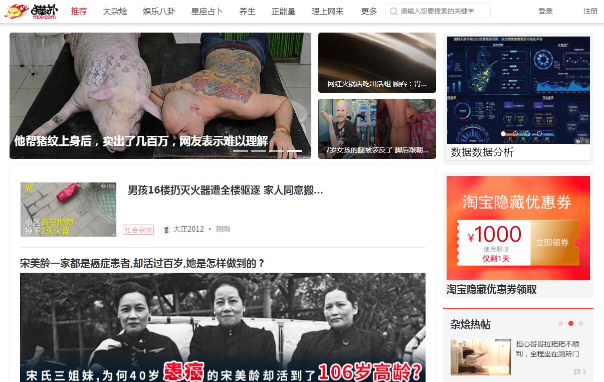 | 網(wǎng)站簡介: 貓撲網(wǎng)絡(luò)流行文化發(fā)源地,匯集大雜燴,貼貼、視頻、娛樂新聞、文學、汽車等內(nèi)容為一體的娛樂資訊聚合移動新媒體。堅持BT和YY的娛樂精神,結(jié)合大數(shù)據(jù),深度挖掘新聞背后的故事,為用戶推薦最熱門的流行資訊。 |