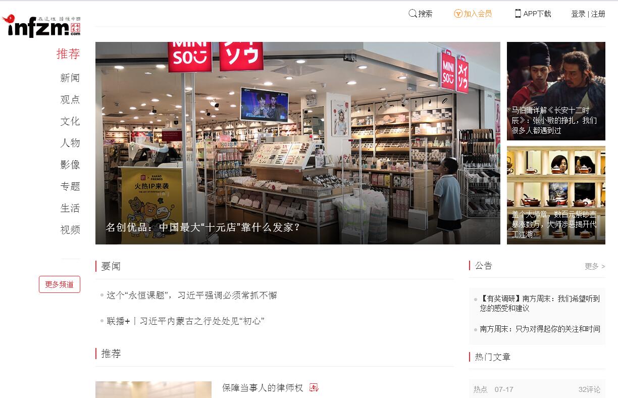 《南方周末》創(chuàng)辦于1984年,由南方報(bào)業(yè)傳媒集團(tuán)主管主辦,以“在這里,讀懂中國”為追求,以“正義、良知、愛心、理性”為基本理念,是一份在中國有著廣泛影響、深具公信力的嚴(yán)肅新聞大報(bào)。作為中國發(fā)行量最大的新聞周報(bào),《南方周末》覆蓋各大中城市,訂閱比例超過68%,讀者群優(yōu)質(zhì)穩(wěn)定,高等以上學(xué)歷者超過78%。至2018年,已連續(xù)11年被中國郵政評為“中國暢銷報(bào)刊”。在“中國500最具價(jià)值品牌排行榜”上,一直是建榜以來排名前十的報(bào)紙中唯一的周報(bào)?!赌戏街苣贩曛芩某霭?,除評論、副刊等版塊外,主打深度新聞報(bào)道,其中有很大部分是調(diào)查類報(bào)道,關(guān)注涵蓋社會、時(shí)政、經(jīng)濟(jì)、環(huán)保、健康、教育、文化、軍事等各大領(lǐng)域。作為中國新聞界最著名的品牌之一,《南方周末》具有巨大的國際影響力,曾專訪過美國前總統(tǒng)奧巴馬、德國總理默克爾、法國前總理阿蘭?朱佩等政要和知名人士,引起了廣泛關(guān)注。南方周末還是中國媒體融合發(fā)展的領(lǐng)先者,目前南周報(bào)系旗下有南方周末、南方人物周刊和南瓜視業(yè)等三大品牌內(nèi)容機(jī)構(gòu),擁有超過5600萬的有效用戶。南方周末APP歷史積累下載量超過1700萬,官方微信關(guān)注人數(shù)超過240萬,此外,還有兩個(gè)粉絲量超千萬的微博號——1304萬的南方周末、1074萬的南方人物周刊,它們與南周知道、24樓影院、南瓜學(xué)堂等共同構(gòu)建起了一個(gè)頗具規(guī)模的南周新媒體矩陣。2018年上半年,南方周末正式提出了“以內(nèi)容付費(fèi)工程統(tǒng)攬融合轉(zhuǎn)型工作全局”的戰(zhàn)略思路。8月23日,南方周末宣布會員制正式上線,成為中國第一家設(shè)立計(jì)量式軟性內(nèi)容付費(fèi)墻的報(bào)紙。