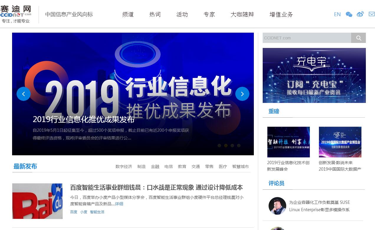 賽迪網(wǎng)是IT門戶網(wǎng)站之一,是工業(yè)和信息化部直屬的中國電子信息產(chǎn)業(yè)發(fā)展研究院旗下具有影響力的創(chuàng)新網(wǎng)絡(luò)媒體,及時的產(chǎn)業(yè)及事件報道平臺。賽迪網(wǎng)致力于企業(yè)級信息傳播服務(wù),在云計算、大數(shù)據(jù)、移動互聯(lián)網(wǎng)、智慧城市、智能工業(yè)、信息化、智能家居領(lǐng)域提供實用的資訊服務(wù)。成立于2000年3月的賽迪網(wǎng),是工業(yè)和信息化部直屬的中國電子信息產(chǎn)業(yè)發(fā)展研究院(CCID,賽迪集團(tuán))旗下具有影響力的IT創(chuàng)新網(wǎng)絡(luò)媒體。秉承“專業(yè)創(chuàng)造價值”的理念,賽迪網(wǎng)致力于企業(yè)級信息的傳播服務(wù),更通過微博、微信等新媒體手段,在云計算、大數(shù)據(jù)、移動化時代,幫助客戶將精準(zhǔn)訊息傳遞給價值人群。在此基礎(chǔ)上,構(gòu)建一個以互動媒體為基礎(chǔ),以中國市場情報中心、賽迪教育、賽迪無線三大增值業(yè)務(wù)為支撐的綜合性IT信息服務(wù)平臺。