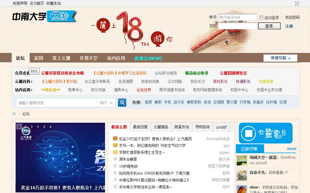 中南大學云麓園BBS。