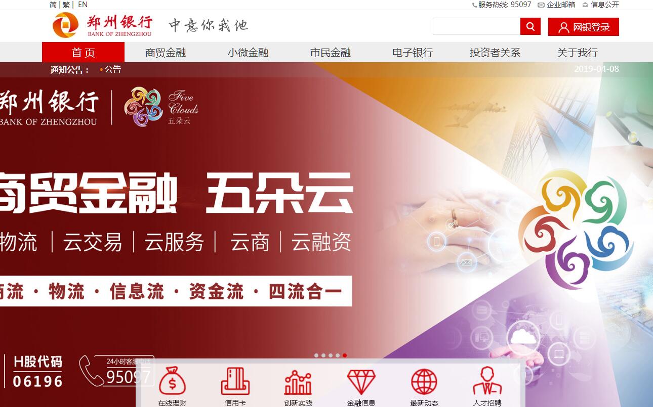 鄭州銀行是經(jīng)中國人民銀行批準,在鄭州市48家城市信用合作社基礎(chǔ)上于1996年11月注冊成立的區(qū)域性股份制商業(yè)銀行,2000年12月更名為鄭州市商業(yè)銀行股份有限公司,2009年10月正式更名為鄭州銀行股份有限公司。本行于2015年12月在香港聯(lián)交所主板掛牌上市,是河南省首家、全國第十家上市的城市商業(yè)銀行。2018年9月,本行順利在深交所掛牌上市,首開國內(nèi)城商行“A+H”股上市先河。截至2018年末,本行在職員工4,460人,全省機構(gòu)營業(yè)網(wǎng)點168家,其中含總行營業(yè)部1家、省內(nèi)分行12家、小企業(yè)金融服務(wù)中心1家。本行發(fā)起成立了九鼎金融租賃公司,管理中牟、新密、鄢陵、扶溝、新鄭、??h、確山7家村鎮(zhèn)銀行,綜合化經(jīng)營扎實推進。資產(chǎn)規(guī)模人民幣4,661.42億元,較年初增長人民幣303.14億元,增幅6.96%;存款本金總額(不含應(yīng)計利息及同業(yè)存款)人民幣2,641.31億元,較年初增長人民幣87.24億元,增幅3.42%;發(fā)放貸款及墊款本金總額人民幣1,595.73億元,較年初增長人民幣311.16億元,增幅24.22%;凈利潤人民幣31.01億元;資本充足率13.15%,不良貸款率2.47%,撥備覆蓋率154.84%,主要指標均符合監(jiān)管要求。本行主營業(yè)務(wù)主要包括公司銀行業(yè)務(wù)、零售銀行業(yè)務(wù)和資金業(yè)務(wù)等。本行為公司銀行客戶提供多元化的金融產(chǎn)品和服務(wù),包括公司貸款(包括貿(mào)易融資)、國際業(yè)務(wù)及服務(wù)、公司存款和手續(xù)費及傭金類業(yè)務(wù)產(chǎn)品及服務(wù)。本行向零售銀行客戶提供多樣化的產(chǎn)品和服務(wù),包括貸款、存款、銀行卡及手續(xù)費及傭金類業(yè)務(wù)產(chǎn)品及服務(wù)。本行的資金業(yè)務(wù)在滿足本行流動性需求的同時,尋求非貸款業(yè)務(wù)用途資金的回報最大化。本行的資金業(yè)務(wù)主要包括貨幣市場交易、證券及其他金融資產(chǎn)投資、債券承分銷、票據(jù)轉(zhuǎn)貼現(xiàn)及再貼現(xiàn)及代客資金業(yè)務(wù)。鄭州銀行一貫堅持走特色化、差異化發(fā)展之路,聚焦“商貿(mào)物流銀行、中小企業(yè)融資專家、精品市民銀行”三大特色業(yè)務(wù)定位,深入推進公司業(yè)務(wù)及零售業(yè)務(wù)轉(zhuǎn)型,并取得初步成效。本行經(jīng)營管理能力的持續(xù)提升,得到了社會各界的廣泛認可。在英國《銀行家》“2018年全球銀行1000強”榜單中,本行一級資本排名第245位,躋身前300強;在《金融時報》2018“中國金融機構(gòu)金牌榜·金龍獎”評選中,榮獲“年度十佳城市商業(yè)銀行”。