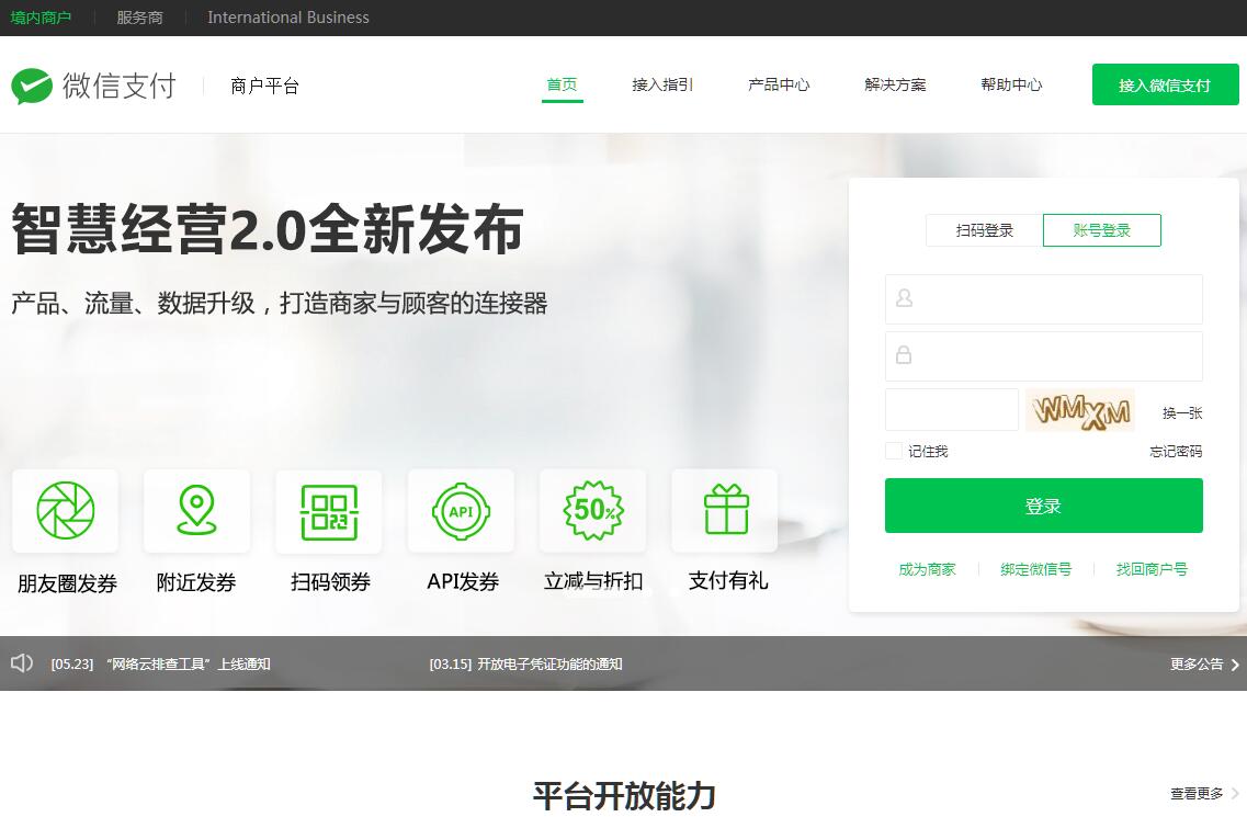 微信支付(https://pay.weixin.qq.com)是騰訊集團旗下中國領(lǐng)先的第三方支付平臺,一直致力于為用戶和企業(yè)提供安全、便捷、專業(yè)的在線支付服務(wù)。以“微信支付,不止支付”為核心理念,為個人用戶創(chuàng)造了多種便民服務(wù)和應(yīng)用場景,為各類企業(yè)以及小微商戶提供專業(yè)的收款能力,運營能力,資金結(jié)算解決方案,以及安全保障。企業(yè)、商品、門店、用戶已經(jīng)通過微信連在了一起,讓智慧生活,變成了現(xiàn)實。2018年8月15日,騰訊發(fā)布的第二季度及中期綜合業(yè)績報告顯示,微信和WeChat的合并月活躍賬戶數(shù)達10.58億。以微信支付為核心的“智慧生活解決方案”至今已覆蓋數(shù)百萬門店、30多個行業(yè),用戶可以使用微信支付來看病、購物、吃飯、旅游、交水電費等,微信支付已深入生活的方方面面。微信支付自2013年8月正式上線以來,從支付開始,逐步深入生活,成為新商業(yè)價值的牽引器。2014年春節(jié),微信紅包第一次爆發(fā);2014年1月,微信支付與滴滴合作引爆打車市場;2014年3月,微信支付向商戶全面開放;2014年8月,微信支付智慧生活解決方案發(fā)布;2015年春節(jié),微信春晚“搖一搖”,向全國人民發(fā)放5億現(xiàn)金紅包;2015年9月,微信支付面向服務(wù)商全面開放;2015年11月,正式開放跨境支付能力;2016年4月,推出微信支付星火計劃,扶持服務(wù)商成長;2016年9月,“微信買單”功能上線,零門檻接入,幫助中小商戶甩掉技術(shù)包袱;2016年12月,騰訊移動支付月活躍賬戶及日均支付交易筆數(shù)均超過6億;2017年7月3日,微信支付上線全新微信支付境外開放平臺,降低境外商戶接入門檻;2018年6月,騰訊移動支付業(yè)務(wù)活躍賬戶已逾8億。