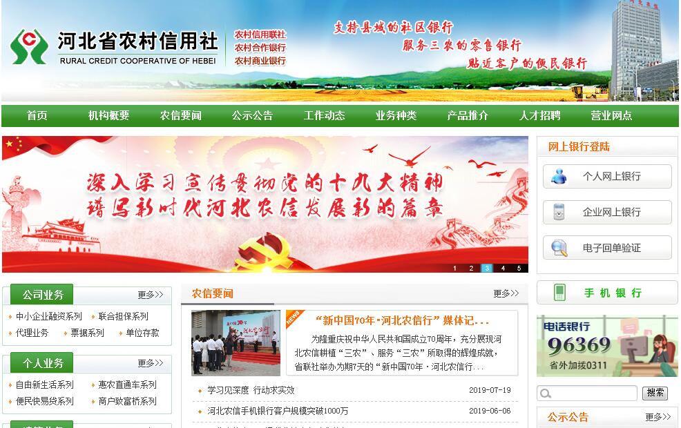 河北省是中國農(nóng)村合作金融的發(fā)祥地。1923年,我國第一家農(nóng)村信用合作社在河北省香河縣誕生。新中國成立后,農(nóng)村信用社如雨后春筍,在燕趙大地普遍興起,并先后經(jīng)歷了村集體、人民公社、農(nóng)業(yè)銀行、人民銀行、銀監(jiān)等部門管理的體制變遷。2003年,國務院在全國啟動了新一輪的農(nóng)村信用社改革。河北省作為全國第二批改革試點省份,于2004年全面啟動農(nóng)信社改革工作。2005年3月22日,省政府印發(fā)河北省農(nóng)村信用社改革方案,決定組建河北省農(nóng)村信用社聯(lián)合社(簡稱省聯(lián)社)。方案規(guī)定,省聯(lián)社是由轄內(nèi)市聯(lián)社和縣聯(lián)社自愿入股組成,實行民主管理、具有獨立企業(yè)法人資格的地方性金融機構,是省政府對農(nóng)村信用社的行業(yè)管理機構。具體承擔對全省農(nóng)村信用社、農(nóng)村合作銀行和農(nóng)村商業(yè)銀行的管理、指導、協(xié)調(diào)和服務職能;組織指導農(nóng)村信用社貫徹執(zhí)行國家金融法規(guī)、政策;引導農(nóng)村信用社堅持為“三農(nóng)”服務的宗旨,提高支農(nóng)服務水平和服務效率;指導督促農(nóng)村信用社完善內(nèi)部控制,轉換經(jīng)營機制,提高經(jīng)營管理水平和經(jīng)濟效益,防范化解金融風險。2005年6月29日,河北省農(nóng)村信用社聯(lián)合社正式掛牌成立。省聯(lián)社成立以來,在省委、省政府的堅強領導下,立足燕趙、服務城鄉(xiāng),深化改革、創(chuàng)新機制,強化管理、防控風險,在大力支持河北經(jīng)濟發(fā)展的同時,實現(xiàn)了自身脫胎換骨式的變革,發(fā)展成為全省營業(yè)網(wǎng)點分布最廣、員工數(shù)量最多、存貸款規(guī)模及資產(chǎn)總量最大、支農(nóng)力度最強的銀行業(yè)金融機構,成為聯(lián)系廣大農(nóng)民的金融紐帶和服務城鄉(xiāng)經(jīng)濟的支農(nóng)主力軍。截至2018年底,省聯(lián)社機關有18個內(nèi)設部門,下轄市級農(nóng)信機構15家(其中:審計中心11家、市級農(nóng)商行4家)、縣級行社145家(其中:農(nóng)商行64家、農(nóng)合行1家),共有營業(yè)網(wǎng)點5009個,從業(yè)人員5.3萬人;全省農(nóng)信系統(tǒng)各項存款13549億元,各項貸款9047億元,總資產(chǎn)達到16056多億元,業(yè)務規(guī)模和資金實力位居全省銀行業(yè)之首。