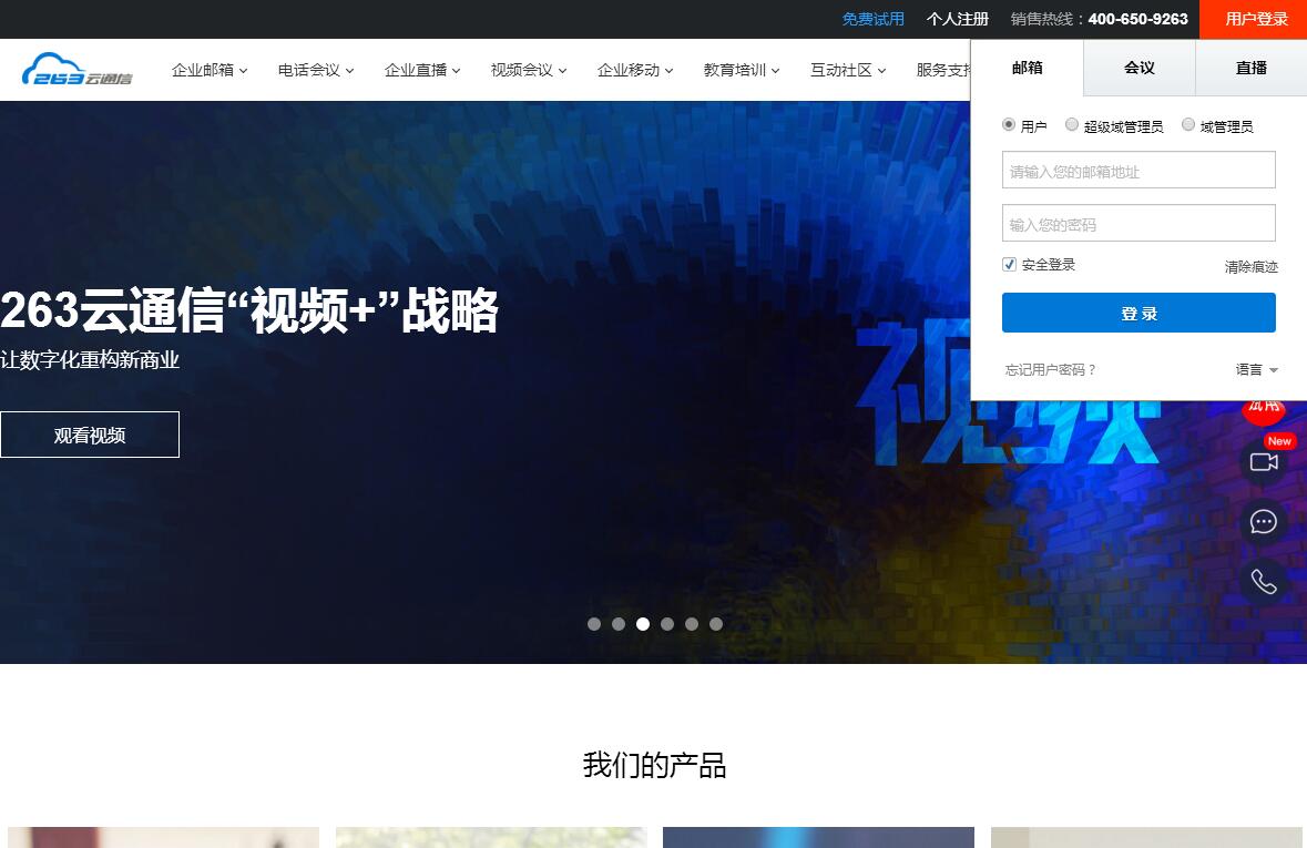 | 網(wǎng)站簡(jiǎn)介: 北京二六三企業(yè)通信有限公司(簡(jiǎn)稱:263企業(yè)通信),20年深耕企業(yè)互聯(lián)網(wǎng)通信服務(wù)領(lǐng)域,為國(guó)內(nèi)外各類客戶提供融合創(chuàng)新、專業(yè)高效的溝通、協(xié)作、分享、傳播服務(wù)。近年來(lái),公司憑借優(yōu)秀的營(yíng)收能力,成為領(lǐng)先的企業(yè)互聯(lián)網(wǎng)通信專家。目前,公司在產(chǎn)品、研發(fā)、運(yùn)營(yíng)上形成了企業(yè)郵箱、企業(yè)網(wǎng)盤(pán)、電話會(huì)議、視頻會(huì)議、企業(yè)直播和企業(yè)移動(dòng)全線的企業(yè)通信互聯(lián)網(wǎng)產(chǎn)品能力,并將這些產(chǎn)品深度融合于“連接價(jià)值、賦能行業(yè)”的理念中。2017年底,公司開(kāi)放了“郵箱、會(huì)議、直播”全線產(chǎn)品,以263教育為基點(diǎn),為教育行業(yè)提供軟硬件結(jié)合的一站式在線教育服務(wù)解決方案。263教育涵蓋雙師課堂、直播網(wǎng)校(K12)、大班課堂、小班課堂四種針對(duì)細(xì)分場(chǎng)景在內(nèi)的教育解決方案, 致力于利用互聯(lián)網(wǎng)技術(shù)為教培機(jī)構(gòu)、省地市教育局和大中小學(xué)校,通過(guò)科技助力教育來(lái)推動(dòng)整個(gè)產(chǎn)業(yè)的繁榮和發(fā)展。目前,263企業(yè)通信正在為數(shù)十萬(wàn)家企業(yè)客戶通過(guò)極優(yōu)的成本獲得高品質(zhì)的企業(yè)通信協(xié)作解決方案,幫助企業(yè)客戶在企業(yè)互聯(lián)時(shí)代的云端生態(tài)圈中實(shí)現(xiàn)智慧連接,共贏先機(jī)。 |