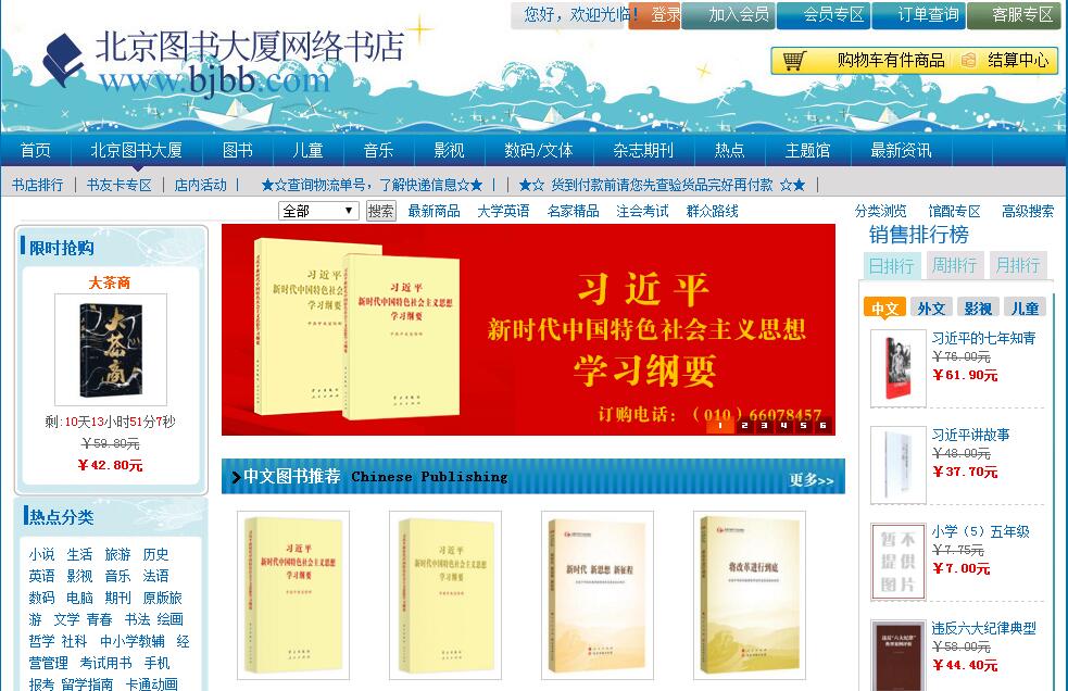 北京圖書大廈網(wǎng)絡(luò)書店是北京圖書大廈網(wǎng)絡(luò)技術(shù)有限公司,是旗下唯一負(fù)責(zé)網(wǎng)上銷售北京圖書大廈正版圖書的門戶網(wǎng)站。于一九九九年三月九日開通。她依托北京圖書大廈的國內(nèi)、外版圖書經(jīng)營的品種實力,云集了全國500多家出版單位出版的30多萬種圖書、音像制品和電子出版物,充分展示我國出版發(fā)行風(fēng)貌。并且擁有安全、快捷的網(wǎng)上支付方式。我們網(wǎng)站的經(jīng)營理念是充分發(fā)揮自身優(yōu)勢,滿足讀者的購書需求,傳播知識、服務(wù)社會!根據(jù)北京圖書大廈拓展電子商務(wù)和提高信息化水平的發(fā)展戰(zhàn)略,北京圖書大廈網(wǎng)絡(luò)書店注重發(fā)揮北京圖書大廈的資源優(yōu)勢,多年來對各界讀者的服務(wù)中積累了豐富的經(jīng)驗且信譽良好。在讀者享受“鼠標(biāo)+水泥”式的服務(wù)背后,是北京圖書大廈的強力支撐,進而為用戶提供優(yōu)質(zhì)、便捷的服務(wù)。在圖書分類中,我們采用了既尊重了中圖法22大類的分類方法,又考慮到了讀者的分類習(xí)慣相結(jié)合的方式。在實體書店的基礎(chǔ)上,我們做了分類優(yōu)化,使您能很容易的找到自己所需要的圖書。另外,搜索引擎更會幫助讀者輕而易舉的找到所需。