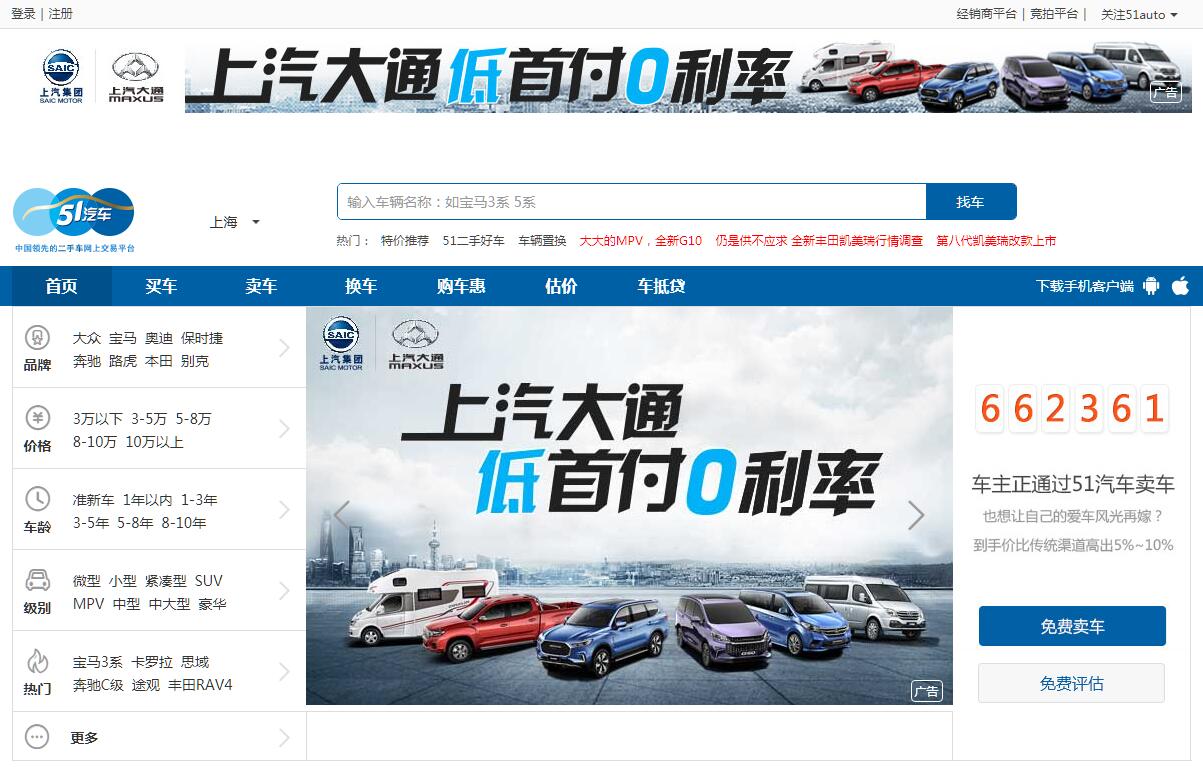 “51汽車”成立于2005年9月,托依強(qiáng)勢(shì)股東背景及國外著名風(fēng)險(xiǎn)投資,創(chuàng)辦51汽車網(wǎng)站(www.51auto.com)和《51汽車》雜志,成為國內(nèi)第一家專業(yè)二手車網(wǎng)絡(luò)交易平臺(tái)。經(jīng)過幾年的不斷成長,“51汽車”已發(fā)展成為中國領(lǐng)先的二手車網(wǎng)上交易平臺(tái)。依托網(wǎng)絡(luò)、平面媒體的立體結(jié)合,聯(lián)盟多家國內(nèi)權(quán)威媒體,以數(shù)種領(lǐng)先的二手車網(wǎng)絡(luò)營銷和交易產(chǎn)品,打造出線上線下雙向互補(bǔ)、立體聯(lián)動(dòng)的整合營銷基地,可為汽車商家全方位實(shí)現(xiàn)“目標(biāo)顧客,觸手可及,精準(zhǔn)鎖定,強(qiáng)效推廣”的市場(chǎng)目標(biāo),同時(shí)也讓各個(gè)階層的消費(fèi)者都能享受到網(wǎng)上汽車交易的公平和簡單,帶給供求雙方最便捷、實(shí)效的體驗(yàn),迅速成就“買賣二手車,上51汽車網(wǎng)”的堅(jiān)實(shí)口碑。
