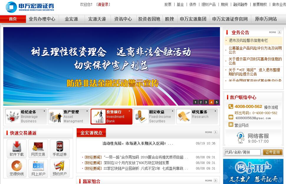 申萬宏源證券、000166、申萬宏源、申萬宏源合并、申萬宏源重組、證券經(jīng)紀、投資資訊、證券交易、財務顧問、投資顧問、證券承銷與保薦、證券自營、證券資產(chǎn)管理、證券投資資金代銷、宏源期貨、為期貨公司提供中間介紹業(yè)務、融資融券。申萬宏源證券有限公司(簡稱“申萬宏源”),是由新中國第一家股份制證券公司——申銀萬國證券股份有限公司與國內(nèi)資本市場第一家上市證券公司——宏源證券股份有限公司,于2015年1月16日合并組建而成。公司注冊資本430億元,擁有員工近8000名,在全國設有34家區(qū)域分公司和303家營業(yè)部(含申萬宏源西部證券公司),并設有香港、倫敦、東京、新加坡、首爾等海外分支機構。申萬宏源證券有限公司目前擁有全面的證券類業(yè)務資格,主要包括:證券經(jīng)紀、證券投資咨詢、融資融券、代銷金融產(chǎn)品、證券投資基金代銷、為期貨公司提供中間介紹業(yè)務(以上各項業(yè)務限新疆、甘肅、陜西、 寧夏、青海、西藏以外區(qū)域),證券資產(chǎn)管理,證券承銷與保薦(限國債、非金融企業(yè)債務融資工具、政策性銀行金融債、企業(yè)債承銷),證券自營(除服務新疆、 甘肅、陜西、寧夏、青海、西藏區(qū)域證券經(jīng)紀業(yè)務客戶的證券自營外),股票期權做市。公司將在中投公司、中央?yún)R金公司等股東單位的大力支持下,契合國家發(fā)展戰(zhàn)略重點布局上海、新疆、香港、新加坡等區(qū)域,通過轉(zhuǎn)型創(chuàng)新不斷做大做強,朝著“具有國際競爭力、品牌影響力和系統(tǒng)重要性的現(xiàn)代投資銀行”的目標加快邁進,為中國資本市場的創(chuàng)新發(fā)展作出積極貢獻。