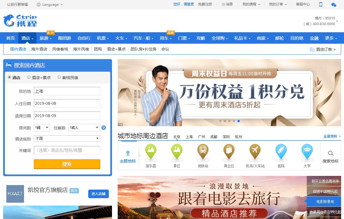 | 網(wǎng)站名稱: | 攜程酒店 | ||