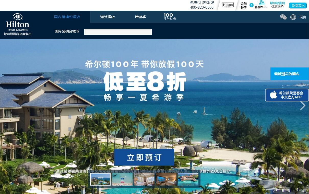 | 網(wǎng)站名稱: | 希爾頓酒店 | ||
