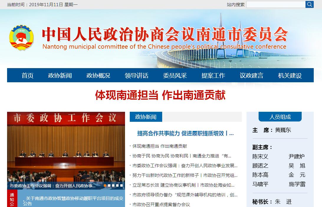 政協(xié)南通市第一屆委員會于1955年8月7日選舉產(chǎn)生,其前身是1949年9月24日至27日召開的南通市第一屆各界人民代表會議,當(dāng)時沒有選舉產(chǎn)生協(xié)商委員會,1950年1月4日至10日,第二屆各界人民代表會議召開,選舉產(chǎn)生了南通市各界人民代表會議協(xié)商委員會。南通市政協(xié)由中國共產(chǎn)黨、各民主黨派、各人民團(tuán)體和無黨派人士組成,設(shè)主席、副主席若干人和秘書長,并設(shè)常務(wù)委員會主持會務(wù)。南通市政協(xié)成立半個世紀(jì)以來,在中共南通市委的領(lǐng)導(dǎo)下,堅持中國共產(chǎn)黨同各民主黨派“長期共存、互相監(jiān)督、肝膽相照、榮辱與共”的方針,充分發(fā)揚(yáng)社會主義民主,運用多種民主形式,組織參加本會的各黨派、團(tuán)體和各族各界人士參政議政,對全市的大政方針及政治、經(jīng)濟(jì)、文化和社會生活中的重要問題,提出意見和建議,進(jìn)行政治協(xié)商和民主監(jiān)督,協(xié)助中共南通市委、市政府搞好各個時期的中心工作和社會主義事業(yè)。特別是黨的十一屆三中全會以來,南通市政協(xié)按照政治協(xié)商和民主監(jiān)督工作逐步經(jīng)?;?、制度化的要求,加強(qiáng)自身建設(shè),進(jìn)一步發(fā)揮政治協(xié)商、民主監(jiān)督和參政議政的職能作用,認(rèn)真貫徹執(zhí)行黨的路線、方針、政策,在推進(jìn)全市改革開放和現(xiàn)代化建設(shè),完善社會主義民主和法制,維護(hù)安定團(tuán)結(jié)的政治局面,宣傳祖國統(tǒng)一方針政策,鞏固和發(fā)展愛國統(tǒng)一戰(zhàn)線等方面,做了大量富有成效的工作,顯示了中國共產(chǎn)黨領(lǐng)導(dǎo)的多黨合作和政治協(xié)商制度的優(yōu)越性。南通市政協(xié)至今已歷十二屆。目前,市十二屆政協(xié)主席會議成員有:主席黃巍東,副主席陳宋義、尹建爐、顧諾之、吳旭、陳本高、金元、馬嘯平,秘書長朱進(jìn)。市十二屆政協(xié)設(shè)27個界別,現(xiàn)有政協(xié)常委會組成人員105名,政協(xié)委員531名。