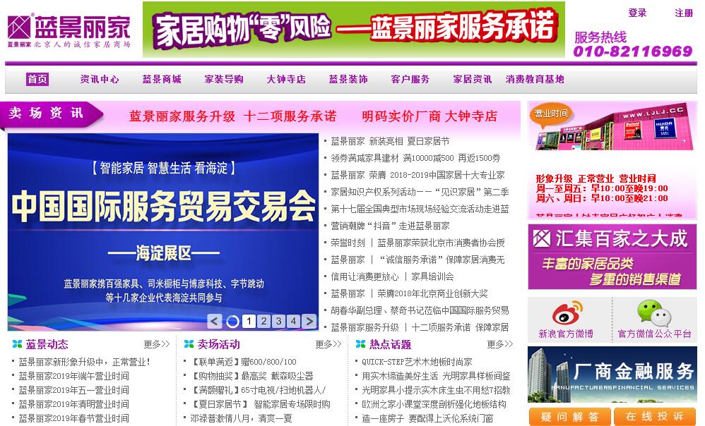 | 網站簡介: 北京藍景麗家大鐘寺家居廣場(以下簡稱藍景麗家)地處北京市海淀區(qū)北三環(huán)西路23號,總建筑面積是92000多平方米,是集家具、家裝、建材、飾品展示銷售為一體的家居企業(yè)。藍景麗家現有品牌家居廠商500多家,知名家裝公司10家,內部購物環(huán)境舒適優(yōu)美、硬件配套設施完善齊全,質量售后服務周到熱忱,誠信經營公平交易,多年來憑借高品質的家居商品,科學完善的管理體系及堅持不懈的誠信服務,彰顯了藍景麗家的品牌優(yōu)勢,塑造了“北京人的誠信家居商場”這一企業(yè)誠信品牌形象。藍景麗家在廠商與商品管理方面,一貫實行產品標準準入制等一系列配套管理措施;規(guī)范廠商必須使用標準的北京市家具建材買賣合同進行統一收銀交易認證;對所有銷售商品執(zhí)行先行負責制。在企業(yè)內部管理方面,藍景麗家堅持運行國際化、標準化的內部管理體系。截止到2016年,商城在全國家居行業(yè)內已連續(xù)十三年連續(xù)通過“質量/環(huán)境/職業(yè)健康安全”三項國際管理體系認證。 |