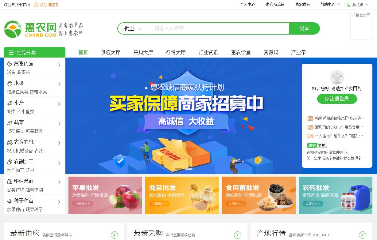 | 網(wǎng)站簡(jiǎn)介: 惠農(nóng)網(wǎng),由湖南惠農(nóng)科技有限公司開(kāi)發(fā)運(yùn)營(yíng),是國(guó)內(nèi)領(lǐng)先的農(nóng)村電子商務(wù)和農(nóng)業(yè)信息化服務(wù)平臺(tái)。目前,惠農(nóng)網(wǎng)平臺(tái)囊括水果、蔬菜、畜牧水產(chǎn)、農(nóng)副加工、糧油米面、苗木花草、農(nóng)資農(nóng)機(jī)、中藥材、包裝、倉(cāng)儲(chǔ)十大類目,涵蓋超過(guò)1.4萬(wàn)個(gè)常見(jiàn)農(nóng)產(chǎn)品品種,是農(nóng)業(yè)從業(yè)者和采購(gòu)商的必備工具之一。順應(yīng)“互聯(lián)網(wǎng)+”時(shí)代,惠農(nóng)網(wǎng)旨在“用科技推動(dòng)農(nóng)業(yè)產(chǎn)業(yè)升級(jí)”,為實(shí)現(xiàn)“讓農(nóng)民更富裕,讓居民更健康”的愿景,不斷進(jìn)取,銳意創(chuàng)新,孵化出基于農(nóng)村電子商務(wù)的“縣域電商服務(wù)”、“真源碼”、“惠農(nóng)商學(xué)院”、“惠農(nóng)優(yōu)選”、“委托銷售”等服務(wù)項(xiàng)目,通過(guò)農(nóng)品上行、品牌孵化、標(biāo)準(zhǔn)化供應(yīng)鏈打造、溯源、電商培訓(xùn)等落地方式,推進(jìn)農(nóng)業(yè)電商健康可持續(xù)發(fā)展,探索“互聯(lián)網(wǎng)+現(xiàn)代農(nóng)業(yè)”的新途徑和新模式。伴隨著農(nóng)業(yè)供給側(cè)改革和消費(fèi)提質(zhì)升級(jí)的大趨勢(shì),惠農(nóng)網(wǎng)將在促進(jìn)農(nóng)產(chǎn)品標(biāo)準(zhǔn)化、提升農(nóng)產(chǎn)品品牌化及影響力、提高食品安全及防偽溯源能力、促進(jìn)農(nóng)產(chǎn)品流通信息化、優(yōu)化農(nóng)產(chǎn)品流通環(huán)節(jié)等方面繼續(xù)發(fā)力,同時(shí)在對(duì)農(nóng)產(chǎn)品供應(yīng)鏈進(jìn)行全面升級(jí)改造之路上穩(wěn)步前行。未來(lái),惠農(nóng)網(wǎng)業(yè)務(wù)體系將逐步延伸到農(nóng)業(yè)生產(chǎn)技術(shù)、農(nóng)業(yè)生產(chǎn)資料、農(nóng)業(yè)金融等其他領(lǐng)域,致力于打造農(nóng)業(yè)互聯(lián)網(wǎng)體系生態(tài)圈。 |