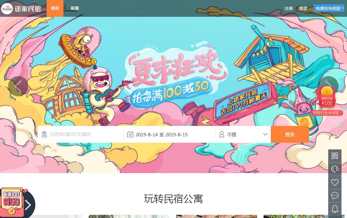 途家民宿,全球公寓民宿預訂平臺,于2011年12月1日正式上線。作為中國領(lǐng)先的民宿短租預定平臺,途家民宿致力于為客戶提供豐富、優(yōu)質(zhì)、更個性的出行住宿體驗,同時也為房東提供高收益且有保障的閑置房屋分享平臺。途家民宿現(xiàn)已覆蓋國內(nèi)345個目的地和海外1037個目的地,在線房源超過100萬套,包含民宿、公寓、別墅等住宿產(chǎn)品及延展服務(wù),可滿足以“多人、多天、個性化、高覆蓋”為特征的出行住宿需求。包括但不限于家庭出游、商務(wù)差旅、休閑度假、聚會團建和過渡性住宿等各類需求。用戶可通過電腦、手機、微信、7×24小時客服電話等多種渠道輕松預訂,即刻體驗當?shù)厝说纳?,同時享受這一新興住宿方式帶來的溫馨、舒適和便捷。在服務(wù)保障方面,途家民宿會對平臺房屋執(zhí)行實地驗真,并為房客提供高達1000萬元人民幣的“安心租”先行賠付保障基金,確保消費者的每一次安心入住。途家民宿歡迎有閑置房屋的房東,來途家民宿分享房源探索全新的房屋分享收益模式和分享社交快樂。途家憑借旗下途家民宿、螞蟻短租、攜程民宿、去哪兒民宿、大魚自助游五大平臺的海量用戶入口,高效運營及貼心的服務(wù),通過最簡便高效的“途家管家”,使房東在免費發(fā)布房屋信息、輕松賺錢的同時,還可以與來自世界各地的房客相互交流分享。途家專業(yè)的房東保障計劃及經(jīng)營指導,免去房東們的后顧之憂,使分享賺錢更省心。2017年,為了幫助更多的閑置房源發(fā)揮價值,途家創(chuàng)行業(yè)之新潮,推出了RBA服務(wù),從上房訂價,到布草洗滌,利用智能物聯(lián),結(jié)合全方位的管家業(yè)務(wù),為房東們提供了“一鍵托管,輕松入賬”的卓越服務(wù)。資本市場方面,隨著國內(nèi)分享經(jīng)濟的逐步升溫和途家民宿預訂業(yè)務(wù)的不斷增長。2017年10月08日,途家民宿線上平臺完成E輪融資,總估值超過15億美金。2015年8月3日,途家民宿完成了D及D+輪融資,總估值超10億美元,正式進入互聯(lián)網(wǎng)行業(yè)的10億美元“獨角獸” 俱樂部。2016年6月6日,途家民宿宣布戰(zhàn)略并購螞蟻短租,進一步強化了住宿分享市場的領(lǐng)導企業(yè)優(yōu)勢。2016年10月20日,途家宣布戰(zhàn)略并購攜程、去哪兒公寓民宿業(yè)務(wù),2018年1月,大魚自助游加入途家,正式形成“攜程民宿、去哪兒民宿、途家、螞蟻短租、大魚自助游的民宿短租入口”五大平臺的矩陣,形成新途家集團。作為中國住宿分享的引領(lǐng)者,途家民宿憑借創(chuàng)新的商業(yè)模式、強大的品牌優(yōu)勢和專業(yè)的運營能力,目前已與國內(nèi)218個政府機構(gòu)簽約,并與TOP100的大部分房地產(chǎn)開發(fā)企業(yè)達成戰(zhàn)略合作,簽約管理資產(chǎn)超過1500億人民幣,簽約儲備房源超100萬套。