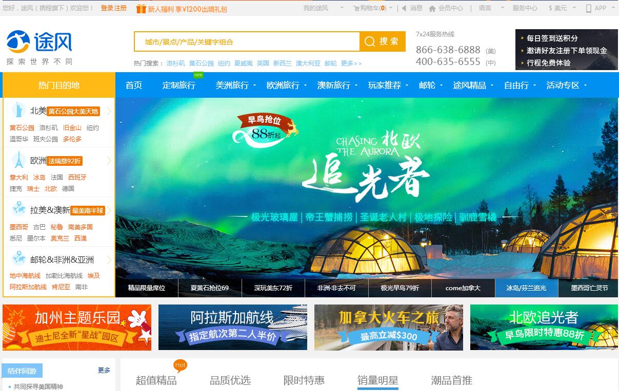 三一旅游集團旗下途風旅游網(wǎng)創(chuàng)辦于2006年,,總部設在美國加利福尼亞州的洛杉磯,作為最大的出境游在線預訂平臺,現(xiàn)有 中文、英文、西班牙文三個網(wǎng)站。2013年12月被上海攜程國際旅行社有限公司戰(zhàn)略投資,成為旗下平臺一員。途風旅游網(wǎng)提供全球包含美洲、歐洲、澳新、非洲、亞洲等區(qū)域的精品行程,產(chǎn)品類型包括定制旅游、當?shù)囟嗳沼?一日游/ 體驗項目門票/酒店/接送服務/簽證辦理/機票代訂。在當?shù)囟嗳沼伟鍓K,途風針對個性化出游需求推出特色主題產(chǎn)品,提供郵輪 游、名校游、親子游、自駕游等特色旅游產(chǎn)品。已成功服務累計2,500,000人次平安出游。在出境游市場中,途風憑借豐富的旅游線路、優(yōu)質(zhì)的服務、可靠的行程品質(zhì),多次獲得“最佳海外目的地產(chǎn)品預訂平臺”、 “最佳歐美目的地旅游在線服務平臺”等大獎。未來的途風,將繼續(xù)以匠人之心,以“全球精品旅游+生活服務專家”為使命,持 續(xù)與全球客戶一起“探索世界不同”。