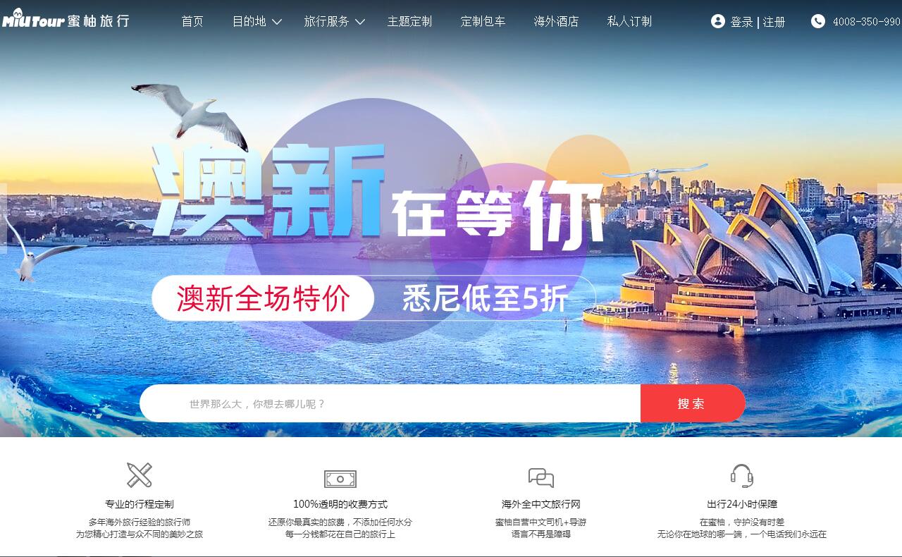 | 網(wǎng)站簡介: 蜜柚旅行隸屬于上海覓程網(wǎng)絡科技有限公司,創(chuàng)立于2014年,旨在讓用戶真正享受輕松自在、趣味非凡的海外私人旅行!蜜柚旅行致力于在游客與境外終端導游之間建立直接對接的平臺,讓用戶享受到定制化深度旅游的同時,節(jié)省大量的時間、精力和成本;也為有能力的終端導游創(chuàng)造了可以實現(xiàn)差異化服務的空間,從而提供更具當?shù)靥厣木包c線路和旅游項目提供給用戶。蜜柚旅行,尋覓最誘人的海外本地旅行! |