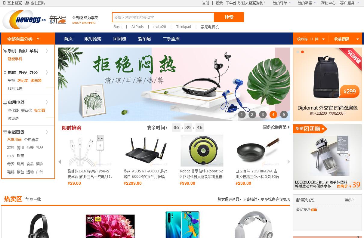 中國新蛋網(wǎng)是依托著名的美國新蛋網(wǎng)而創(chuàng)立的新一代專業(yè)電子商務(wù)消費(fèi)服務(wù)網(wǎng)站,利用強(qiáng)大的全球化集約采購優(yōu)勢、豐富的電子商務(wù)管理服務(wù)經(jīng)驗和先進(jìn) 的互聯(lián)網(wǎng)技術(shù)為您提供新潮、廣受好評的電腦配件、數(shù)碼產(chǎn)品和時尚用品。中國新蛋網(wǎng)秉承集團(tuán)“讓購物成為享受”的宗旨,致力于為用戶提供豐富的商品、便捷的購物方式和完善的售后服務(wù),打造世界一流網(wǎng)上購物體驗。中國新蛋網(wǎng)嚴(yán)格按照國家法規(guī)政策正規(guī)經(jīng)營,經(jīng)營的產(chǎn)品皆為正規(guī)渠道引進(jìn)合法繳稅的原裝正品,有著完善的保修、退貨與售后服務(wù)制度。為了讓您更準(zhǔn)確全面的了解您所需要的商品,我們的每一件商品都提供 實樣的高清晰數(shù)碼照片、詳盡的技術(shù)性能指標(biāo)和制造廠商的介紹。另外,新蛋網(wǎng)還采用多種便捷的支付方式和安全快速的配送體系,通過先進(jìn)的互聯(lián)網(wǎng)技術(shù)進(jìn)行訂單的實時跟蹤,并保證每一位客戶資料的安全與保密。過去的幾年里,您的支持與厚愛使得新蛋網(wǎng)一直保持驚人的速度成長。在電子商務(wù)環(huán)境日益成熟的今天,我們將一如既往地努力,力爭為廣大新老客戶提供愉快的網(wǎng)上購物體驗 。