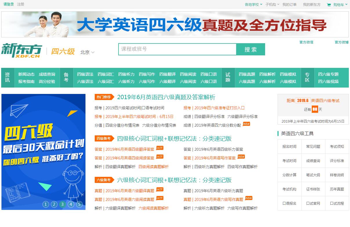 | 網(wǎng)站簡(jiǎn)介: [新東方]英語(yǔ)四六級(jí)頻道提供最新大學(xué)英語(yǔ)四六級(jí)考試真題及答案、英語(yǔ)四六級(jí)報(bào)名、成績(jī)查詢、考試時(shí)間、歷年真題、歷年分?jǐn)?shù)線、四六級(jí)考試輔導(dǎo)、聽(tīng)力、閱讀、寫(xiě)作等信息。免費(fèi)大學(xué)英語(yǔ)四六級(jí)考試學(xué)習(xí)資料下載、四六級(jí)考試英語(yǔ)范文、考試動(dòng)態(tài)信息查詢等各項(xiàng)服務(wù)。 |