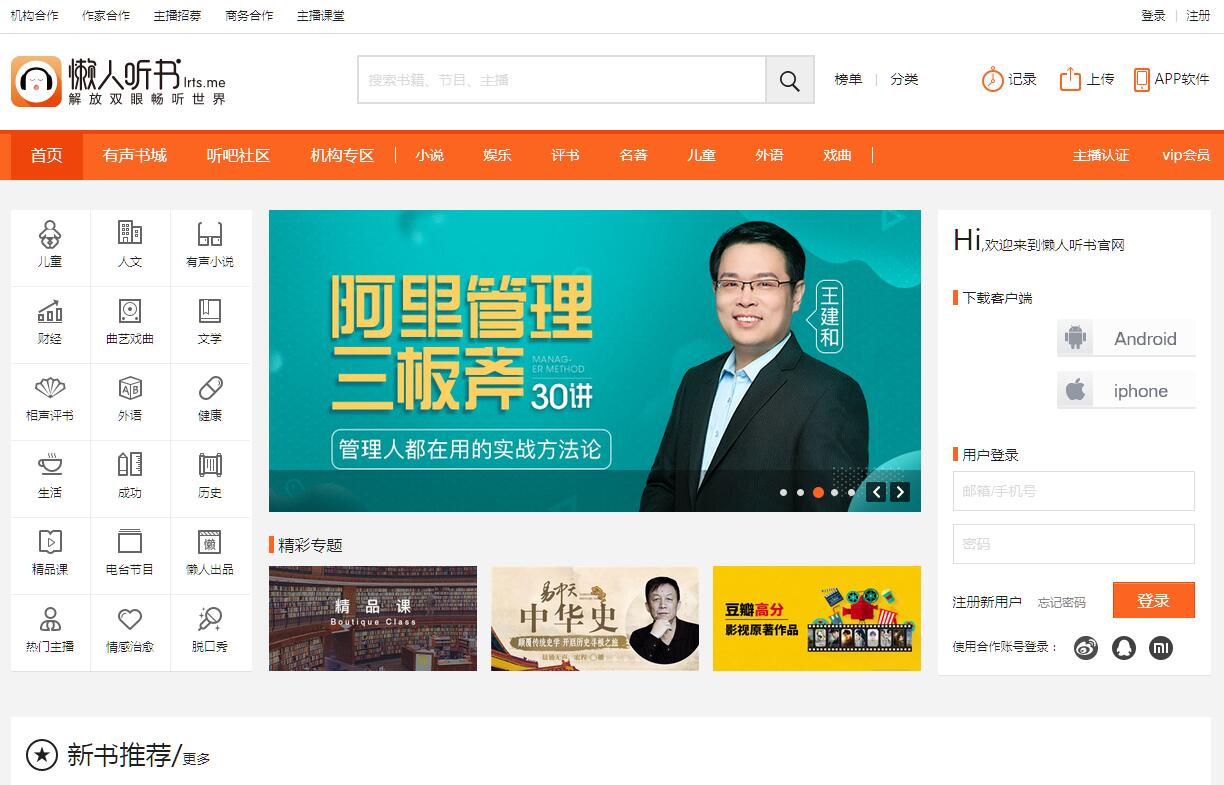 2015 年,懶人聽書與閱文集團(tuán)(騰訊文學(xué)和盛大文學(xué)聯(lián)合成立)達(dá)成內(nèi)部合作戰(zhàn)略,成為其眾多文學(xué)資源的專業(yè)音頻出口,獲得 85%的 網(wǎng)絡(luò)文學(xué)有聲改編權(quán)。懶人聽書現(xiàn)有文學(xué)名著、網(wǎng)絡(luò)小說、詩詞歌賦等數(shù)萬部的有聲書籍音頻作品,除此之外,還擁有電臺(tái)節(jié)目、脫口秀、相聲評(píng)書、綜藝娛樂、少兒天地、百科知識(shí)、影視原音、廣播劇、培訓(xùn)、資訊等近二十多類正版有聲節(jié)目,涵蓋了文學(xué)、社科、教育、時(shí)尚、娛樂等主流內(nèi)容題材,總節(jié)目時(shí)長超 100 萬小時(shí)。海量的有聲閱讀資源、豐富的節(jié)目內(nèi)容,滿足了各年齡層、各類別收聽人群的“全內(nèi)容收聽需求”。懶人聽書注重模式創(chuàng)新,設(shè)置了“主播電臺(tái)”版塊,在 PGC 內(nèi)容模式基礎(chǔ)上,增加 UGC 和 PUGC 新穎模式,形成三大模式并存的多渠道開放平臺(tái)。目前懶人聽書吸引了主播近萬名,節(jié)目數(shù)量超 10 萬,內(nèi)容豐富多彩,形成了一系列高品質(zhì)節(jié)目品牌。從發(fā)展初期單一的聽書工具發(fā)展成為涵蓋主播培養(yǎng)、商業(yè)服務(wù)、社區(qū)互動(dòng)的綜合性有聲閱讀交流平臺(tái)。懶人聽書依托大數(shù)據(jù)技術(shù),通過海量數(shù)據(jù)挖掘,根據(jù)用戶興趣和喜好向用戶個(gè)性化推薦書籍資源,讓用戶更容易找到自己感興趣的內(nèi)容。經(jīng)歷六年的數(shù)據(jù)積累,平臺(tái)已擁有近千萬個(gè)由用戶創(chuàng)建的精品聽單,通過聽單除了可以快速找到感興趣的書籍,還可以找到興趣相同的聽友進(jìn)行聽書交流。此外,針對(duì)用戶興趣的標(biāo)簽體系逐步完善,除了使用兩級(jí) 100 多個(gè)分類組織資源,還對(duì)所有資源都標(biāo)記了使用場景、適合年齡、內(nèi)容特點(diǎn)等主題標(biāo)簽,可以通過標(biāo)簽快速找到相近資源。