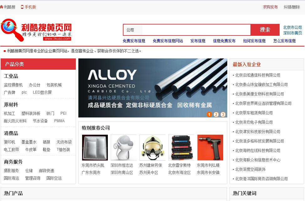 | 網(wǎng)站簡(jiǎn)介: 利酷搜黃頁(yè)網(wǎng),公司黃頁(yè)大全,企業(yè)名錄大全,通過(guò)網(wǎng)絡(luò)公開(kāi)信息、企業(yè)主動(dòng)登記、工商信息查詢等匯集超千萬(wàn)公司信息,是您企業(yè)營(yíng)銷、挖掘客戶的好幫手。 |