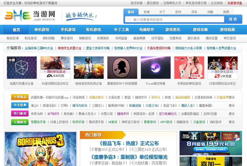 | 網(wǎng)站簡(jiǎn)介: 當(dāng)游網(wǎng)(http://www.3h3.com)于2012年正式上線,是國(guó)內(nèi)專注單機(jī)游戲下載和單機(jī)游戲資訊的單機(jī)游戲網(wǎng)。本站為廣大單機(jī)游戲玩家分享超多好玩的單機(jī)游戲、最新單機(jī)游戲資訊、最經(jīng)典街機(jī)游戲以及最全的單機(jī)游戲攻略。當(dāng)游網(wǎng)分享的所有單機(jī)游戲以及補(bǔ)丁工具都已經(jīng)過(guò)專業(yè)人員嚴(yán)格測(cè)試,均為綠色無(wú)毒、無(wú)插件,保證用戶擁有一個(gè)純凈安全的游戲運(yùn)行環(huán)境,請(qǐng)網(wǎng)友放心下載;本站所有單機(jī)游戲,游戲工具均有詳細(xì)的截圖以及說(shuō)明,保證用戶無(wú)障礙安裝。當(dāng)游網(wǎng)--單機(jī)游戲,越當(dāng)越快樂(lè)! |