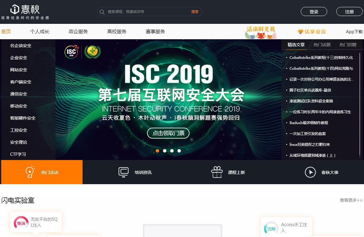 i春秋是新銳的信息安全在線教育品牌。i春秋是以“培育信息時(shí)代的安全感”為使命,致力于通過獨(dú)創(chuàng)性的技術(shù),凝聚、精煉中國(guó)互聯(lián)網(wǎng)安全十多年的實(shí)踐經(jīng)驗(yàn)和理論系統(tǒng),為公民普及信息安全知識(shí),為愛好者提供豐富的知識(shí)點(diǎn)和技能樹,為安全從業(yè)者提供成長(zhǎng)路徑,以適應(yīng)互聯(lián)網(wǎng)+戰(zhàn)略的興起。針對(duì)信息安全學(xué)習(xí)的特殊性,i春秋獨(dú)創(chuàng)了的線上聽課-實(shí)驗(yàn)-評(píng)價(jià)-交流的實(shí)訓(xùn)性學(xué)習(xí)環(huán)境。把復(fù)雜的操作系統(tǒng)、工具和網(wǎng)絡(luò)環(huán)境完整的在網(wǎng)頁進(jìn)行重現(xiàn),為學(xué)習(xí)者提供完全貼近實(shí)際環(huán)境的實(shí)驗(yàn)平臺(tái),學(xué)習(xí)助理小i還會(huì)為你提示并評(píng)價(jià)你的實(shí)驗(yàn)?zāi)芰?。安全、高效、好玩,極大的提高了學(xué)習(xí)效率。