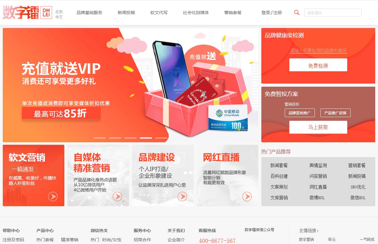 | 網站簡介: DMlei簡稱數(shù)字鐳,是一家專注媒介策略服務的泛媒體投放機構。我們倡導萬物皆媒體,我們專注每一次投放,我們有海量的優(yōu)質流量主,我們基于成功案例做大數(shù)據(jù)分析,瞬息萬變的年代,我們邀請您一起carry泛媒體,共同探尋商業(yè)廣告的處女流量。因此!我們本就應該是高效傳播者! |