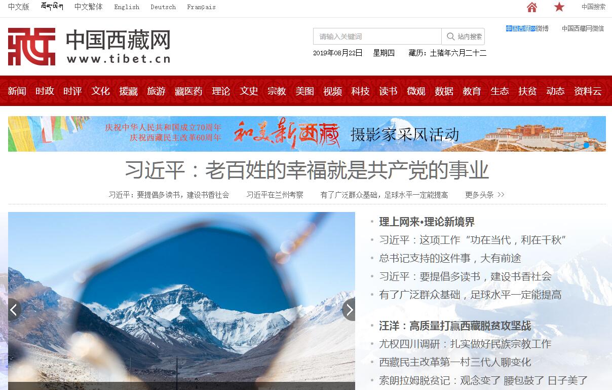 中國西藏網(wǎng)創(chuàng)辦于2000年,目前以中文簡體、中文繁體、英文、德文、法文、藏文等6種文字和音視頻發(fā)布涉藏信息,是以向海內(nèi)外網(wǎng)友介紹西藏為主要職能的國家級重點新聞網(wǎng)站,是中國最大的涉藏專題綜合性網(wǎng)站,以服務西藏發(fā)展、傳播藏民族優(yōu)秀文化、促進國際社會增進對西藏的了解為宗旨,整合涉藏信息資源,向世界客觀、全面地展示西藏的歷史和現(xiàn)實。開通運行以來,中國西藏網(wǎng)新聞信息采集發(fā)布的廣度與深度不斷提升,獨家報道逐年增加,新媒體運用和互動手段日趨完善,點擊率和全球網(wǎng)站排名持續(xù)攀升,已成為海內(nèi)外網(wǎng)友了解一個真實西藏的重要窗口。在海內(nèi)外各界網(wǎng)民的積極支持下,本網(wǎng)正在加大多語種、多媒體、多功能的建設,并將以更加豐富的專題信息、更加生動的傳播形式、更加多元的網(wǎng)絡服務凝聚網(wǎng)民,為成為全球最有影響力的涉藏門戶網(wǎng)站而努力。經(jīng)有關部門批準,“中國西藏信息中心網(wǎng)”自2010年7月8日15時起更名為“中國西藏網(wǎng)”(http://www.tibet.cn)。