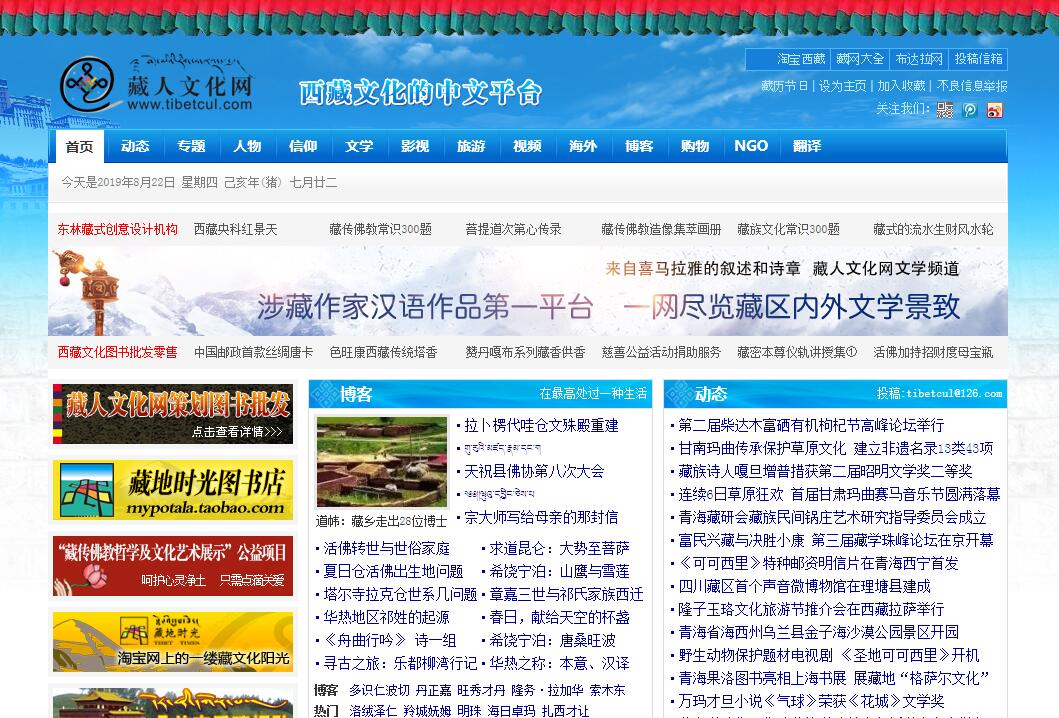 藏人文化網(wǎng)于2004年4月20日創(chuàng)辦,定位為"西藏文化的中文平臺","擁有動態(tài)、博客、視頻、人物、信仰、社區(qū)等近二十個頻道,網(wǎng)站以中文為主,是目前全世界范圍內(nèi)最大的西藏文化的中文門戶網(wǎng)站之一。藏人文化網(wǎng)團隊薈萃了全藏區(qū)的藏族文化精英、藏族頂尖學(xué)者、藝術(shù)名流四十余人擔(dān)任顧問、特約編輯,藏區(qū)范圍內(nèi)獨此一家。藏 人文化網(wǎng)是第一個匯聚集中了當(dāng)代藏文化、娛樂名人資料庫的媒體,有數(shù)百位高僧大德、學(xué)者名流、文化娛樂界人士、作家詩人的文字、圖片資料,以及他們給網(wǎng)站 的題詞、在網(wǎng)站的留影。藏人文化網(wǎng)系列網(wǎng)站自創(chuàng)以來,博客西藏、藏人文化社區(qū)、雪域情緣等互動頻道和系列站點訪問IP累計達1200萬,訪問PV 累積6500萬。注冊用戶12萬多人,其中活躍用戶3萬人。日訪問量最高時達50多萬人次,訪客遍布五省藏區(qū)、北京、上海、廣州及使用中文的華語地區(qū)。在 全球涉藏中文網(wǎng)站中名列前茅,獲得了廣泛的關(guān)注和贊譽。網(wǎng)上搜索"藏人文化網(wǎng)"幾個字,可以看到成千上萬的各種媒體的報道和相關(guān)文字。根據(jù)2012年11 月開元網(wǎng)絡(luò)與品牌研究最新研究結(jié)果,在西藏綜合性網(wǎng)站及社區(qū)網(wǎng)站綜合影響力評估中,藏人文化網(wǎng)在涉藏民營網(wǎng)站中的綜合影響力最強,排名第一。