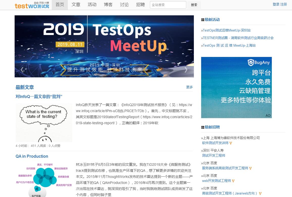 | 網(wǎng)站簡(jiǎn)介: 測(cè)試窩是以軟件測(cè)試為主題的社區(qū)門戶,作為開(kāi)源非盈利的技術(shù)平臺(tái)。一直堅(jiān)持自由、開(kāi)放、分享的理念。目前已成為最具影響力的軟件測(cè)試工程師交流平臺(tái)。提供原創(chuàng)技術(shù)寫作、海外測(cè)試譯文、測(cè)試招聘發(fā)布為主。同時(shí)兼具為平凡測(cè)試人記錄測(cè)試工作心路歷程,發(fā)布最新海內(nèi)外測(cè)試資訊,以及線下沙龍活動(dòng)。成立于2009年的測(cè)試窩,那時(shí)正是SNS興起的年代,起初“測(cè)試窩”希望在軟件測(cè)試同行間構(gòu)筑起一個(gè)屬于軟件測(cè)試人,自己的社交平臺(tái)---而非傳統(tǒng)博客的刻板,也非BBS與Q群的天馬行空般的交流,更非大眾SNS的娛樂(lè)屬性,“窩”字正代表留給測(cè)試人溫暖且不刻意的測(cè)試交流小窩。不忘初心,讓我們繼續(xù)前行。 |