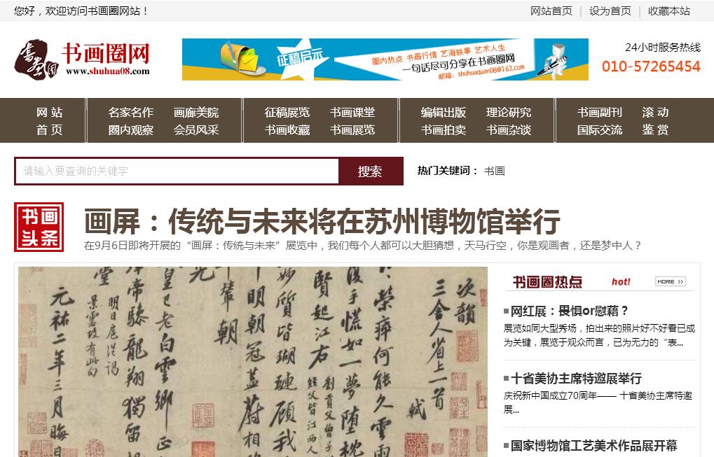 書畫圈網(wǎng)是為書畫藝術(shù)家傾情打造的集宣傳書畫精髓、銷售書畫精品、展覽名家名作、出版名人雅集為一體的現(xiàn)代化、專業(yè)化書畫藝術(shù)專業(yè)門戶網(wǎng)站。書畫圈網(wǎng)立足北京服務(wù)全國,自上線以來,依托著強(qiáng)大的媒體資源優(yōu)勢以及與各地政府、知名企業(yè)、商業(yè)單位、調(diào)研機(jī)構(gòu)的良好合作關(guān)系,憑借對藝術(shù)市場敏銳的觸覺及對客戶需求的準(zhǔn)確把握,全面、客觀的采寫書畫藝術(shù)資訊報(bào)道、追蹤藝術(shù)事件、舉辦高規(guī)格的書畫藝術(shù)展覽,搭建藝術(shù)作品銷售渠道以及交流平臺,來展現(xiàn)書畫藝術(shù)的精髓、展示藝術(shù)家之風(fēng)采、體現(xiàn)書畫藝術(shù)的真正魅力所在,成功打造眾多藝術(shù)名家,本網(wǎng)獨(dú)家采寫的藝術(shù)家人物稿件被國內(nèi)眾多主流媒體轉(zhuǎn)載報(bào)道,并主承辦了多次國內(nèi)外大型書畫藝術(shù)展覽活動。書畫圈網(wǎng)始終秉持人無我優(yōu),人有我憂的服務(wù)理念,圍繞著創(chuàng)意、制作、推廣、營銷這幾個(gè)環(huán)節(jié),營造從藝術(shù)內(nèi)涵到技術(shù)制作都堪稱“精品”的文化藝術(shù)市場氛圍,將書畫藝術(shù)家的藝術(shù)作品信息視覺化和作品傳播效果極大化,使每一次的付出都具有震撼力和有效的銷售力。更多更好地展示各自的優(yōu)秀作品,加強(qiáng)藏家對藝術(shù)品潛在市場的深度認(rèn)識,致在挖掘藝術(shù)精髓,智推精品力作。為書畫圈服務(wù),為書畫藝術(shù)家服務(wù)。
