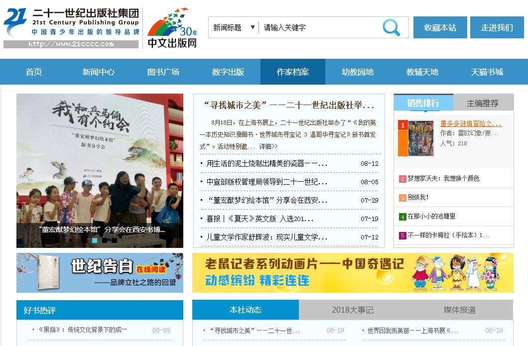 二十一世紀出版社集團有限公司前身為二十一世紀出版社,成立于1985年2月。2014年12月1日,掛牌成立二十一世紀出版社集團有限公司,成為國內首家內生裂變而成的少兒出版集團。該社打造了一大批國內知名品牌圖書產(chǎn)品線,如:曹文軒“我的兒子皮卡”系列、“大中華尋寶”系列、“不一樣的卡梅拉”系列、“彩烏鴉”系列、“彩烏鴉中文原創(chuàng)”系列、“鄭玉巧育兒”系列、“不老泉文庫”、“我的第一本科學漫畫書”系列等。并屢獲國家級大獎,其中6次榮膺“五個一工程”圖書獎、2次中國出版政府獎、4次中華優(yōu)秀出版物獎。2018年年造貨碼洋12.29億元,銷售收入5.06億元,市場占有率穩(wěn)居全國少兒出版社第一。2009年,被國家新聞出版總署授予“全國百佳出版單位”稱號;總體經(jīng)濟規(guī)模綜合排名居全國少兒社第一;在版權方面,曾榮獲“世界知識產(chǎn)權組織版權金獎推廣運用獎”,被評為“全國版權示范單位”; 2013年被國家新聞出版廣電總局列為首批“數(shù)字出版轉型示范單位”; 2015年3月30日,在第52屆博洛尼亞書展上被評為“2015世界年度最佳童書出版社”,是亞洲地區(qū)唯一獲得該項殊榮的出版社。